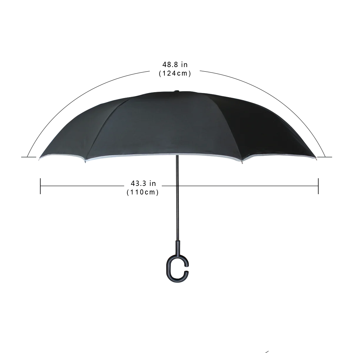 Технология обратного сгиба-уникальная обратная складная рама, которая позволяет легко входить и выходить из автомобилей, дверей и других труднодоступных мест, не намокая. Зонт сворачивается внутрь, чтобы уловить любые капли воды внутри навеса, чтобы предотвратить утечку.