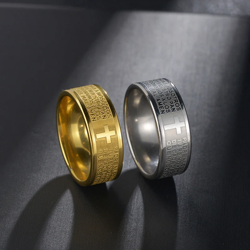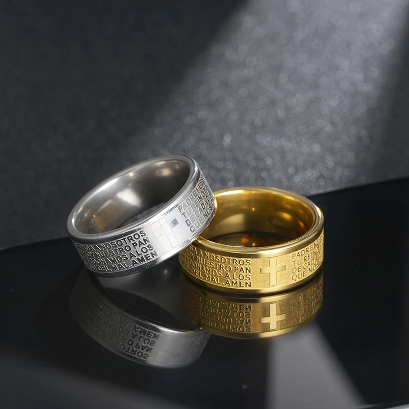 Осязаемое испанское Писание, Библия, молитва Господа, крест, кольца никогда не выцветают, нержавеющая сталь для женщин и мужчин, христианские украшения