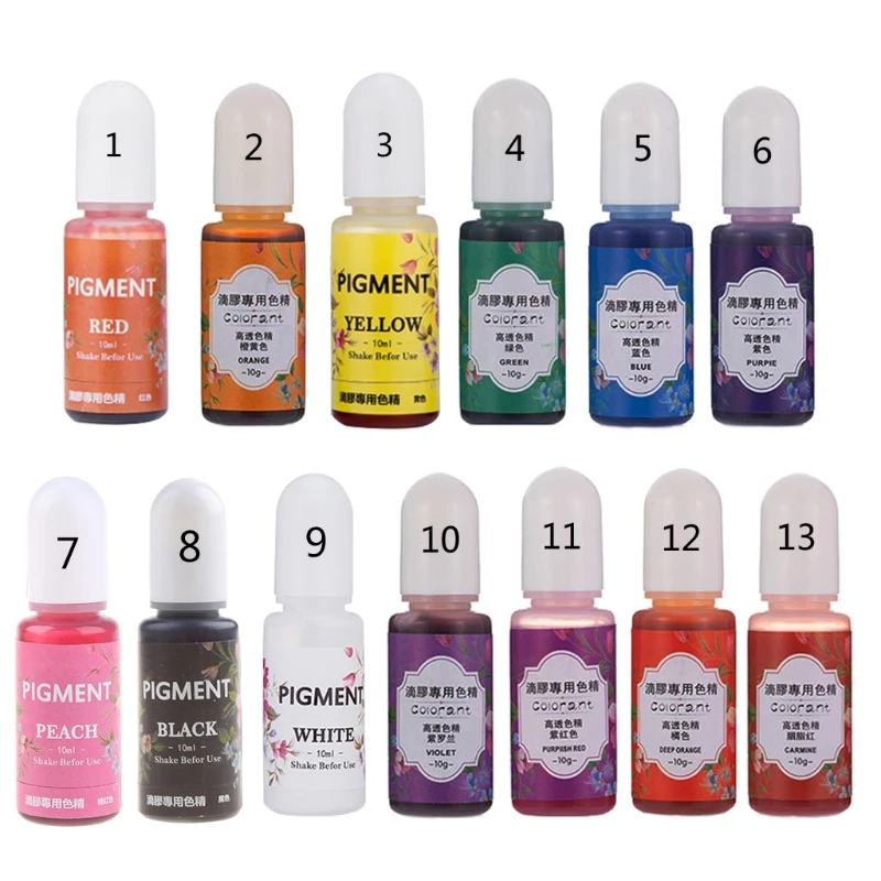 13 цветов, эпоксидная УФ-смола, окрашивающий краситель, жидкий эпоксидный пигмент, смола, краситель, устойчивый к выцветанию, 10 мл, полупрозрачный