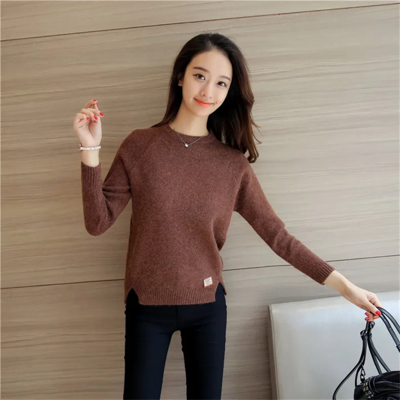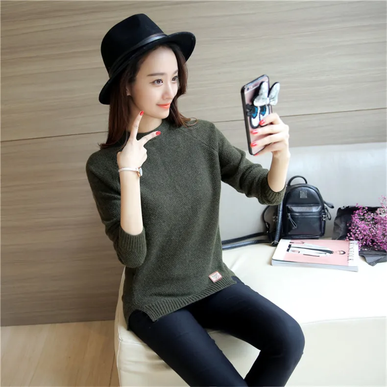 Свитеры и пуловеры WEIHAOBANG для женщин, весна-осень, с длинным рукавом, Женский Однотонный пуловер, Женский Повседневный вязаный свитер