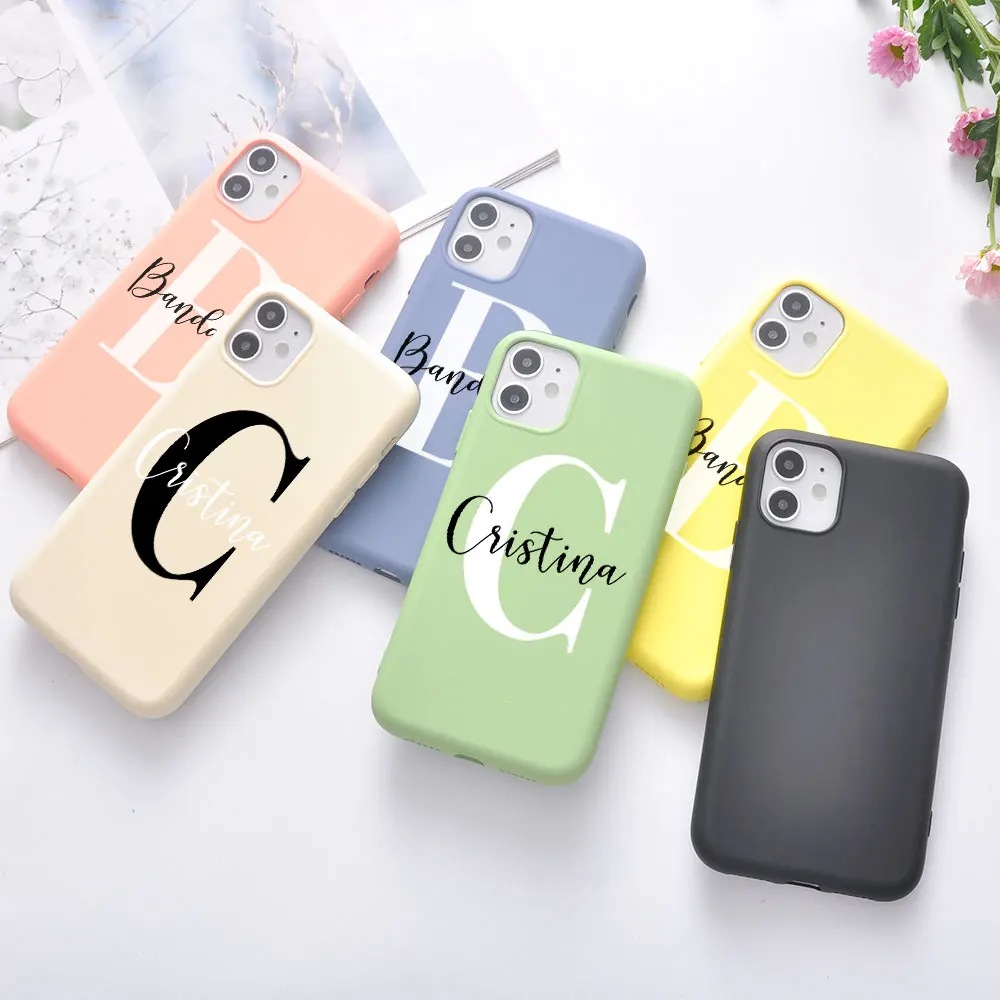 Чехол для телефона с именем и надписью на заказ для iPhone 12, 11 Pro, Max, X, XR, XS, 7, 8 Plus, мягкий силиконовый чехол розового, зеленого, синего цветов с индивидуальным дизайном сделай сам