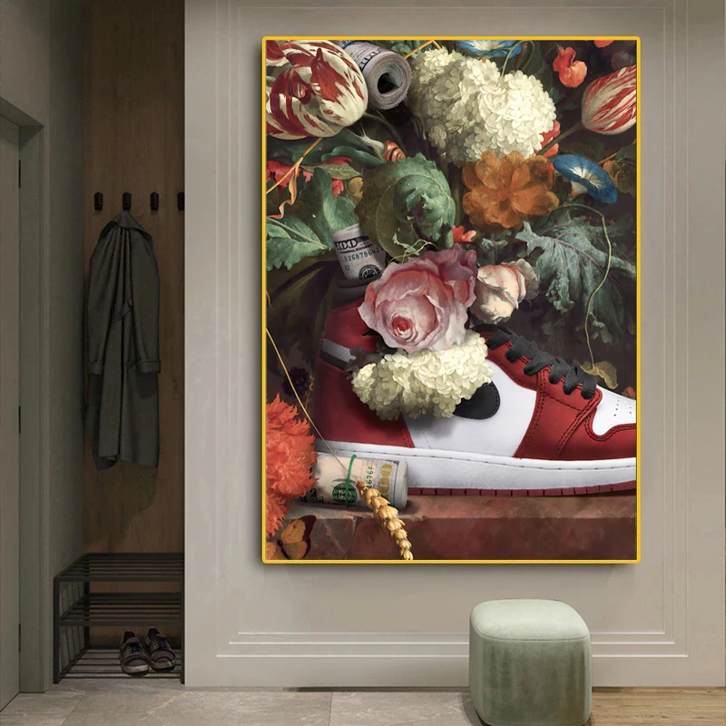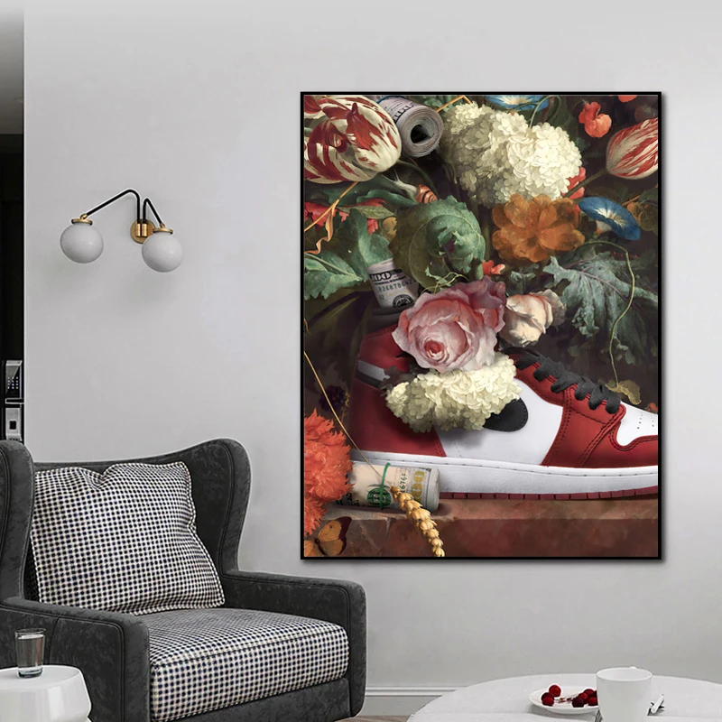 Абстрактный постер с растениями и цветами, принты на холсте, картина обуви, деньги в маске, винтажная живопись, настенное искусство, декоративная домашняя картина