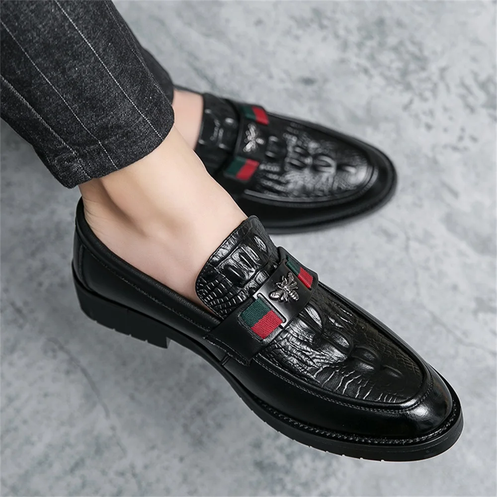 Мужские кожаные крокодиловые туфли, модные мягкие мужские туфли с узором пчелиного гороха, высококачественные британские туфли для вождения