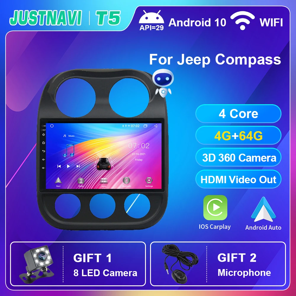 Автомагнитола для Jeep Compass Patriot 10,0-2010, 4 + 64 ГБ, Android 2016, DSP, GPS, 360 дюйма