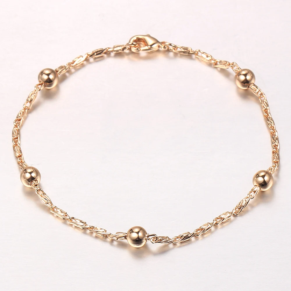 Женский базовый браслет из розового золота 585 пробы с шариками и золотыми бусинами, цепочка со спутниковой связью, модные ювелирные изделия, подарок на день рождения 20 см, CB66
