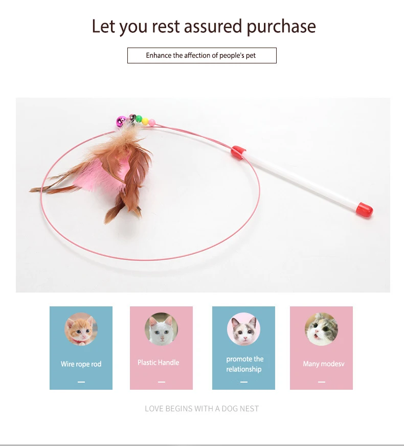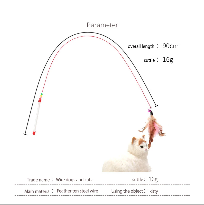 The high-quality plastic rod can withstand the cat's scratching and biting, and the bright feathers can attract the cat's attention.