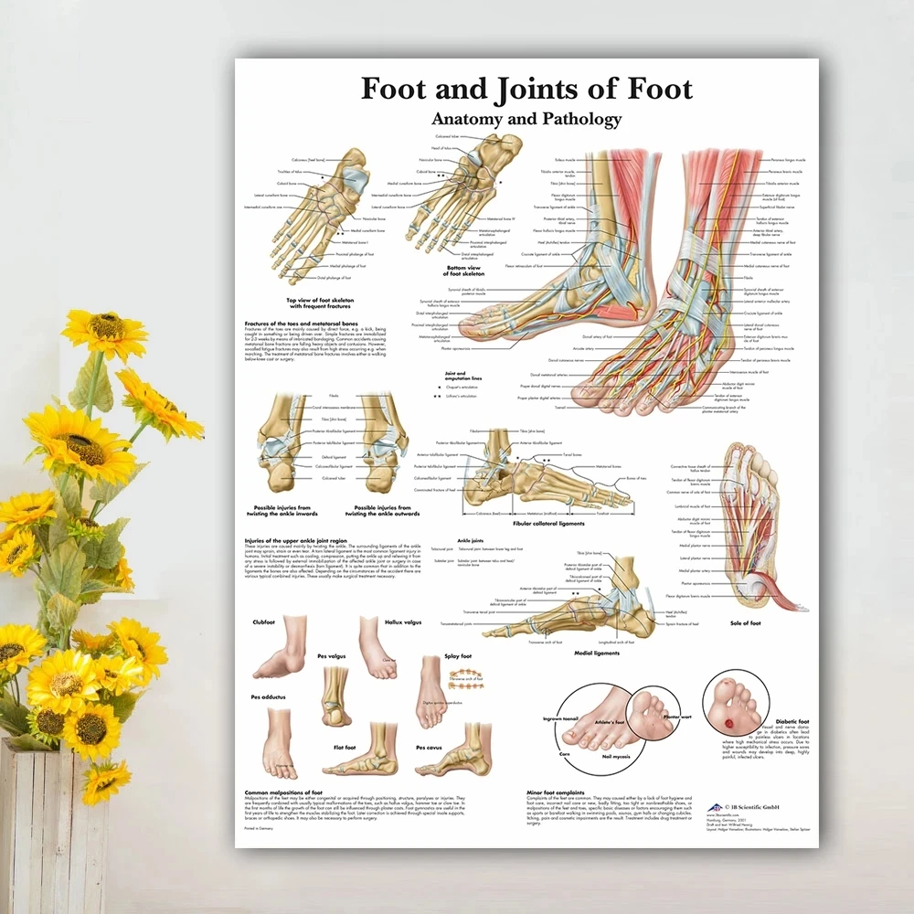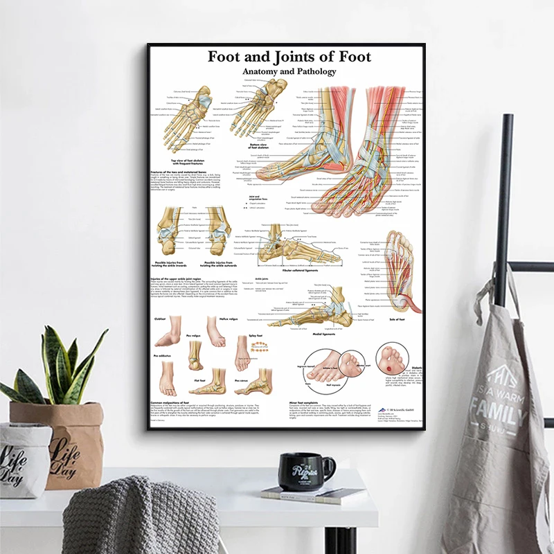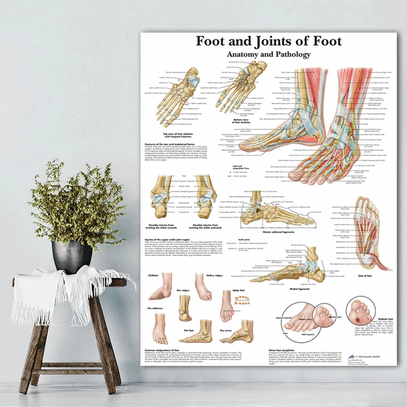 Суставы стопы, таблица для ног, анатомическая патология, постер, Ка...