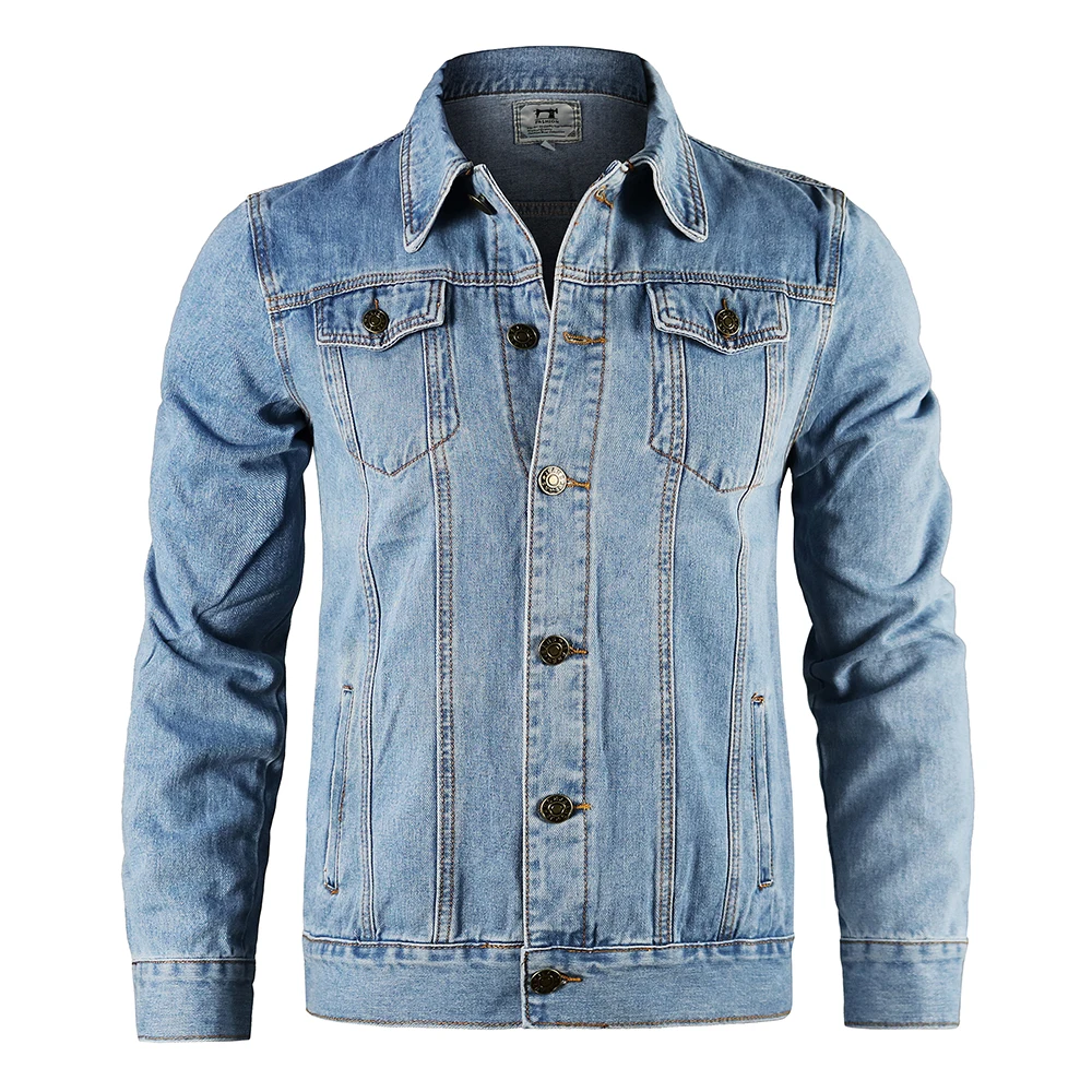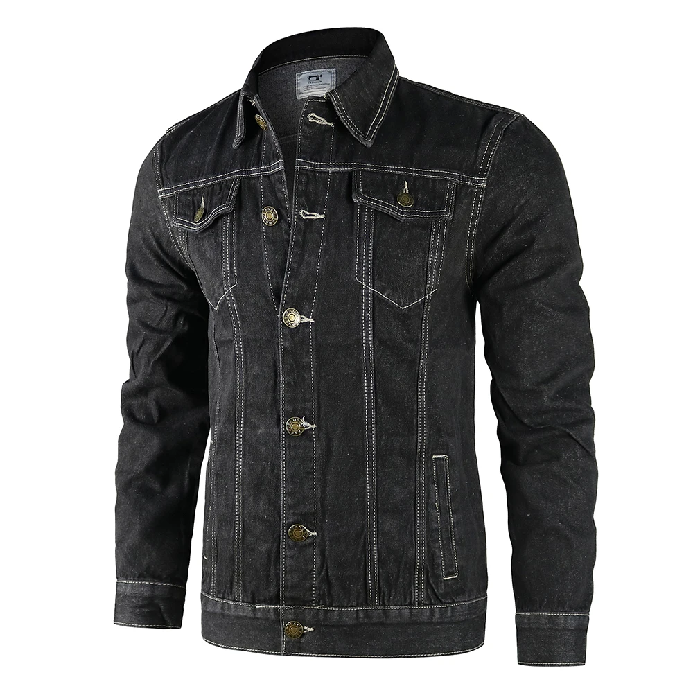 Куртка мужская джинсовая однобортная, повседневная однотонная, с лацканами, из 2021 хлопка, приталенный силуэт, качественная, осень