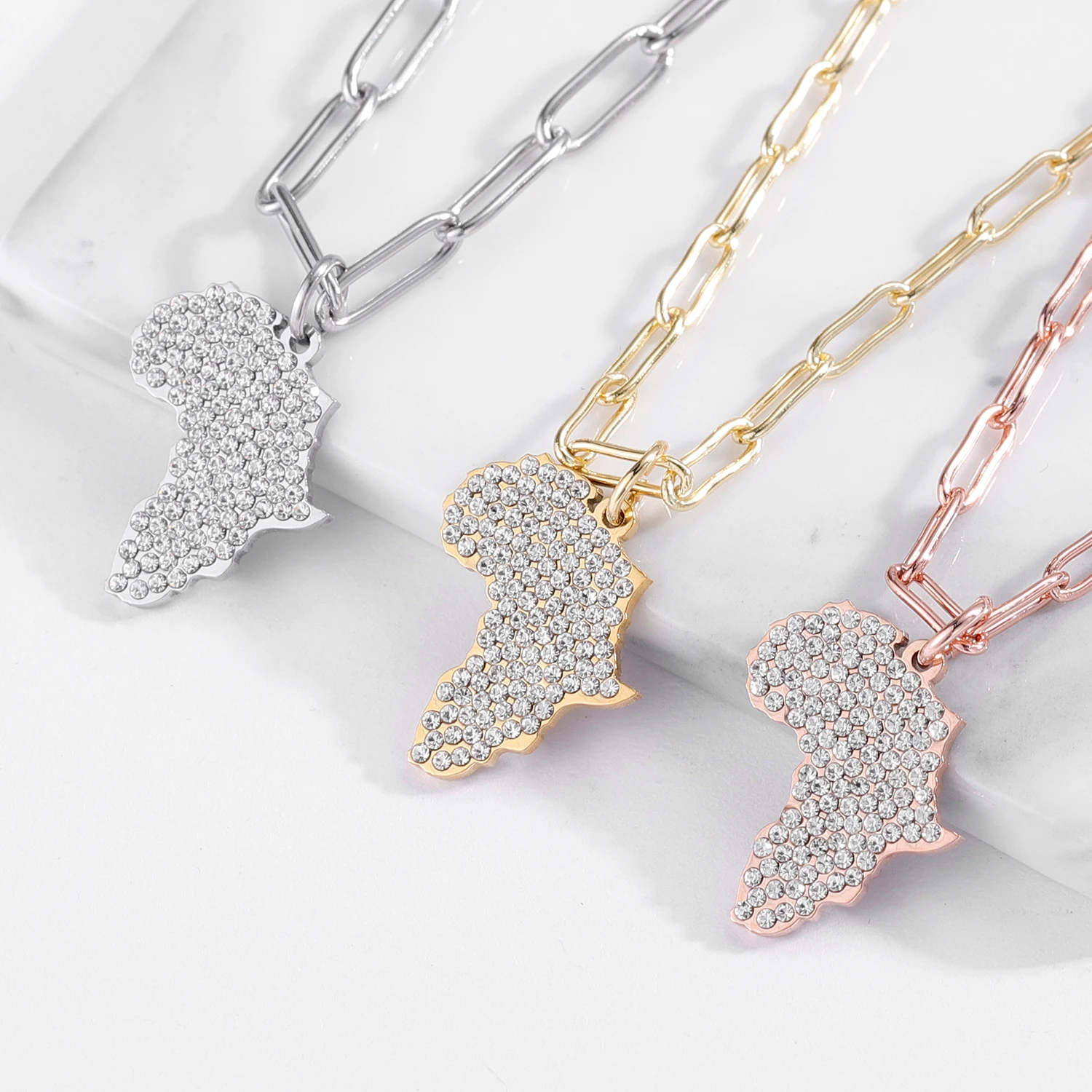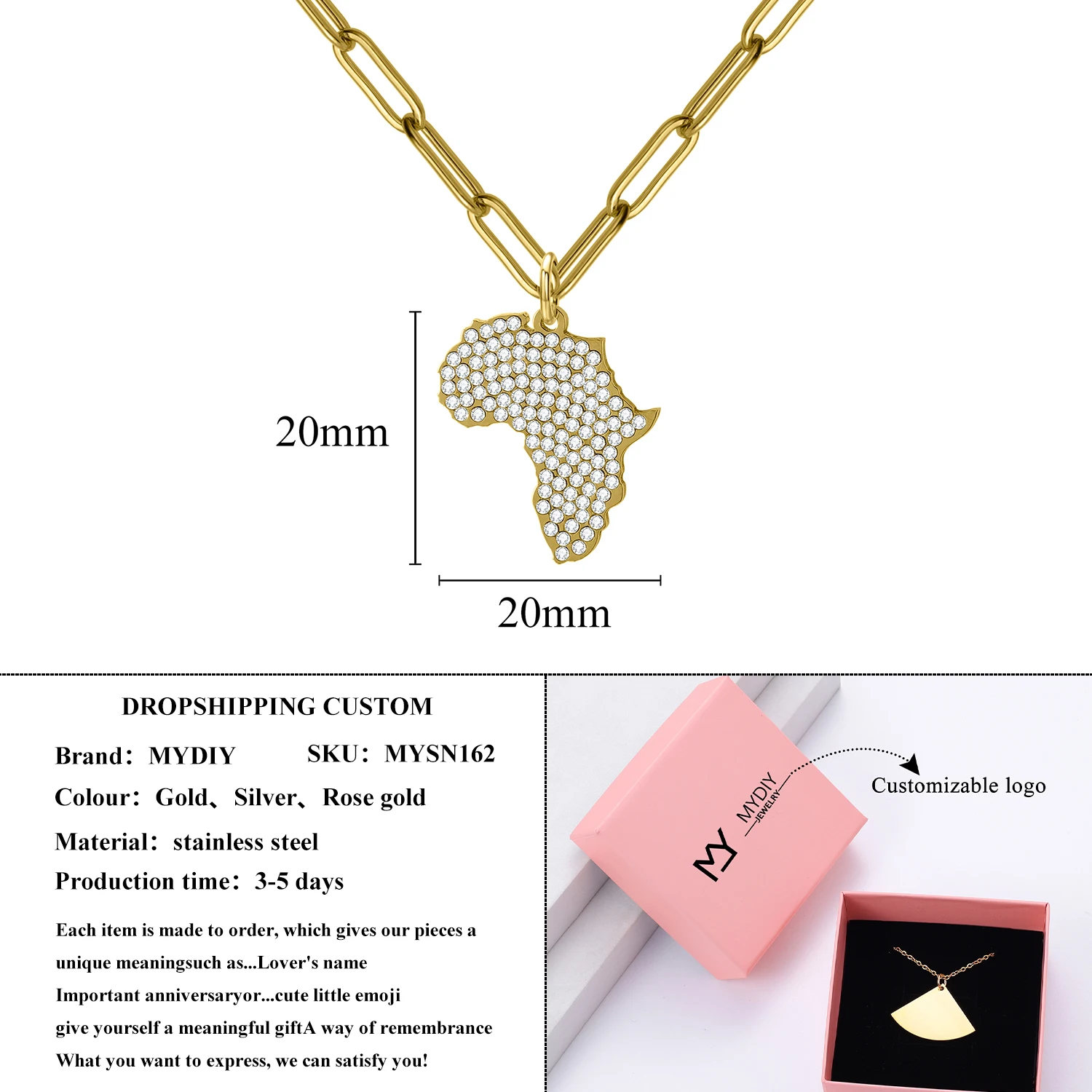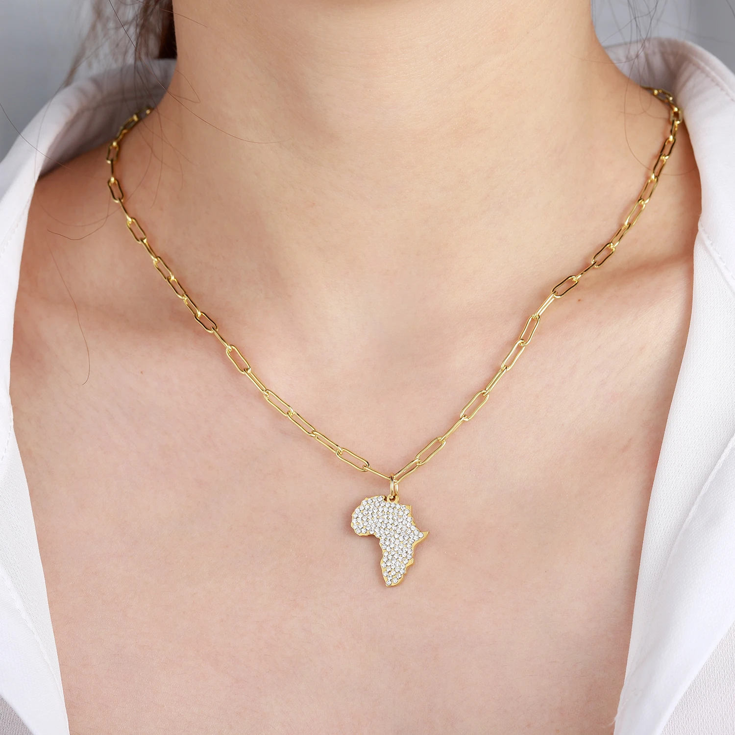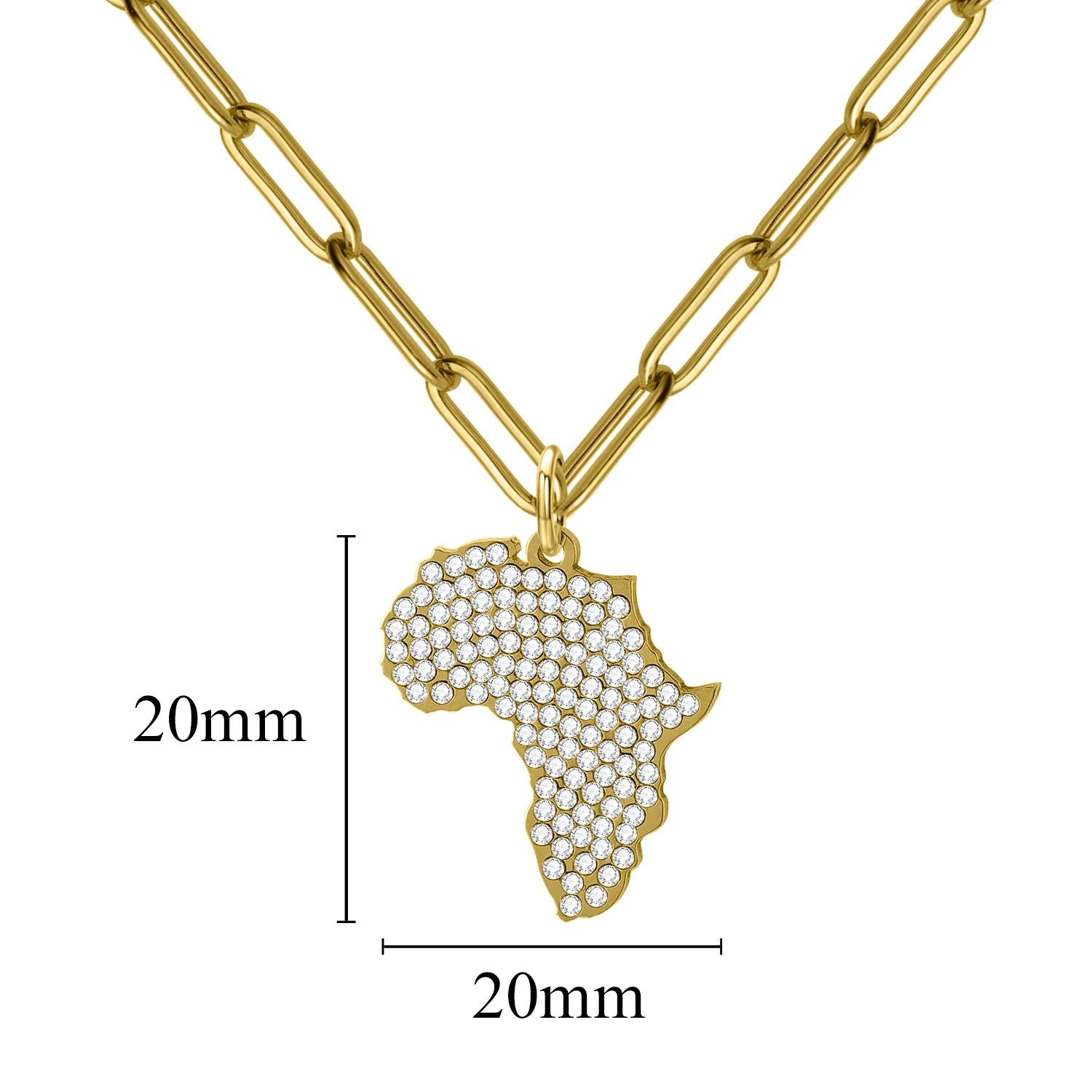 Ожерелье Стразы bling для мужчин, украшение в африканском стиле, ожерелье в стиле хип-хоп, из нержавеющей стали, не потускнеет, Золотое колье с картой страны