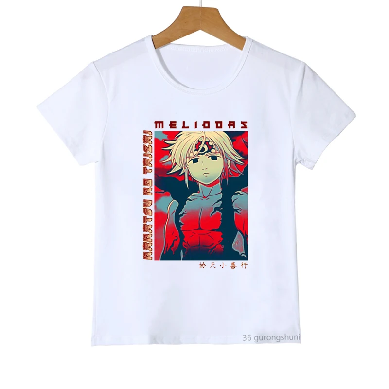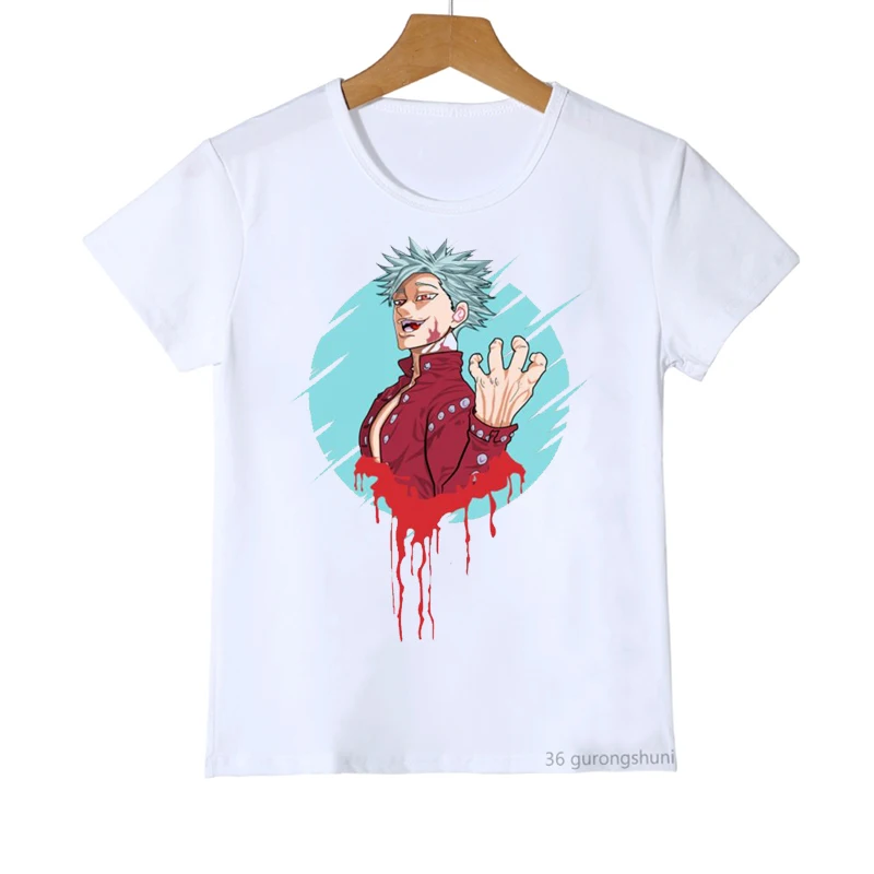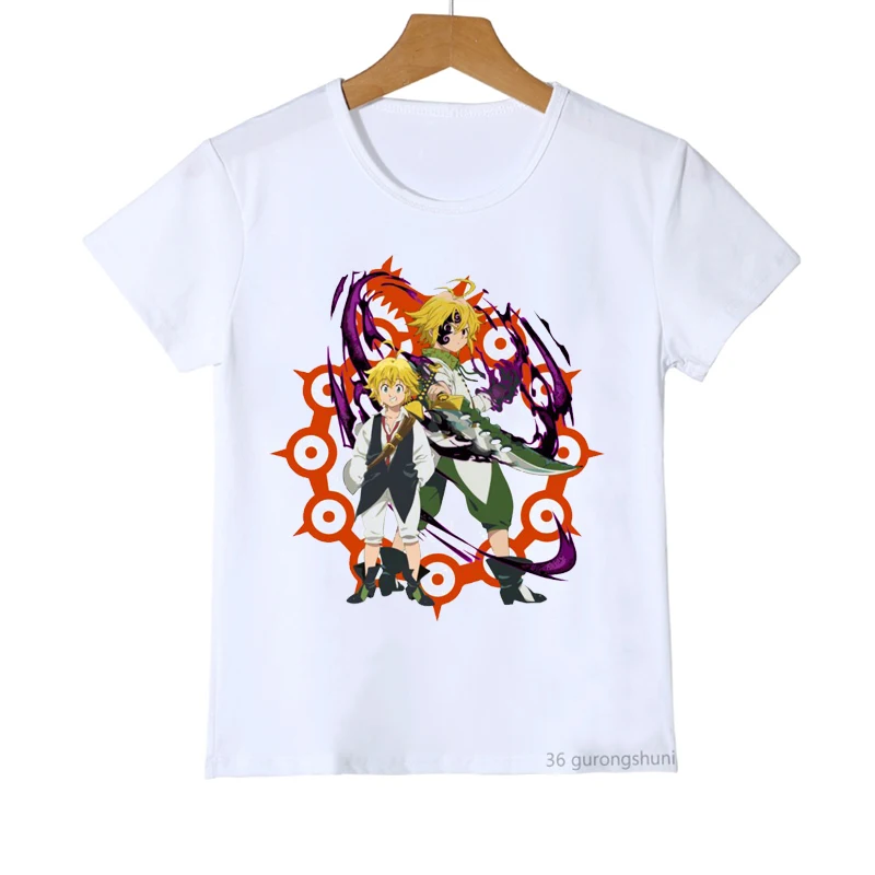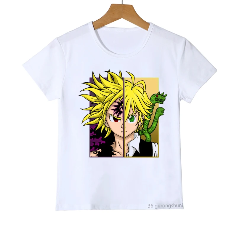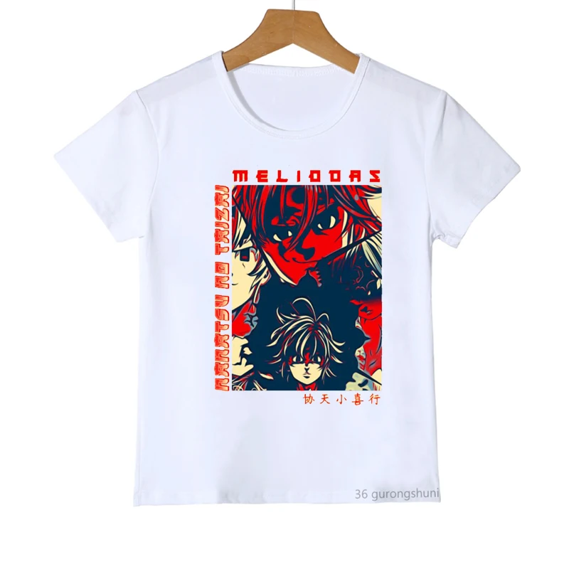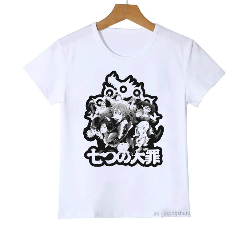 Футболка для мальчиков, белая рубашка с мультяшным японским аниме семи смертных грехов, детский топ с графическим принтом, в стиле хип-хоп