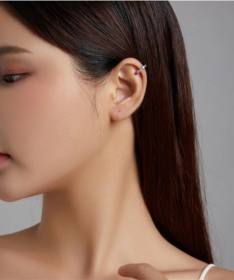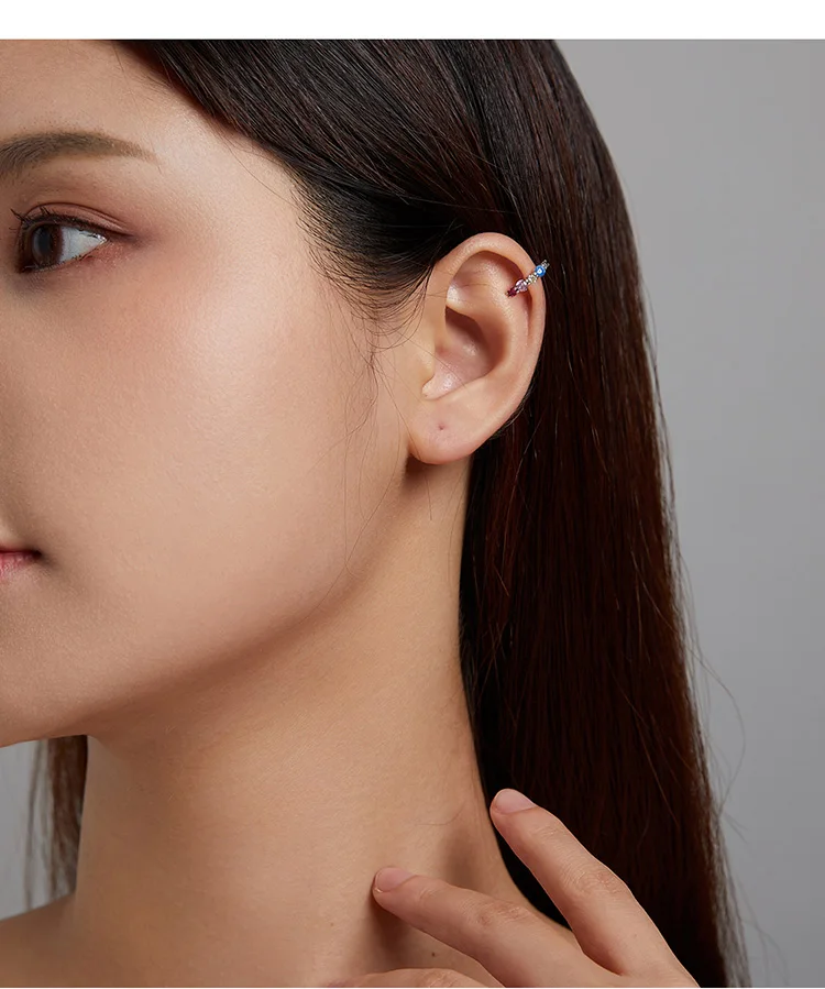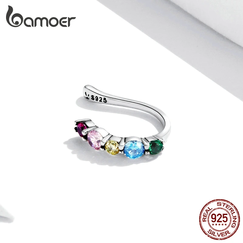 Bamoer 1 шт., радужные цвета, циркон, эльф, запонки, клипсы, серебро 925 пробы, серьги для женщин, массивные ювелирные изделия, вечерние, подарок SCE1250
