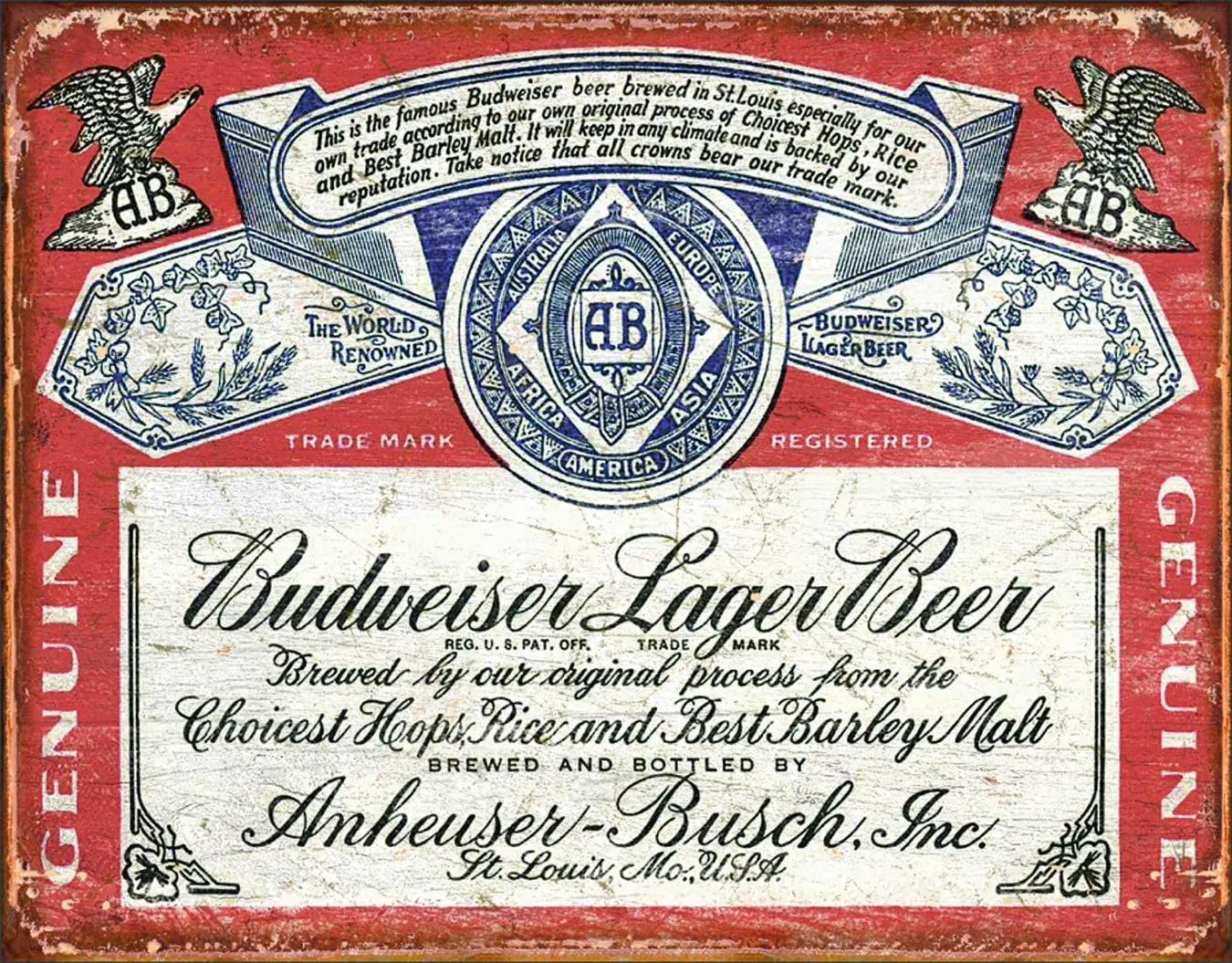 Пивной рекламный ретро-рекламный щит Bud Budweiser, винтажный метал...