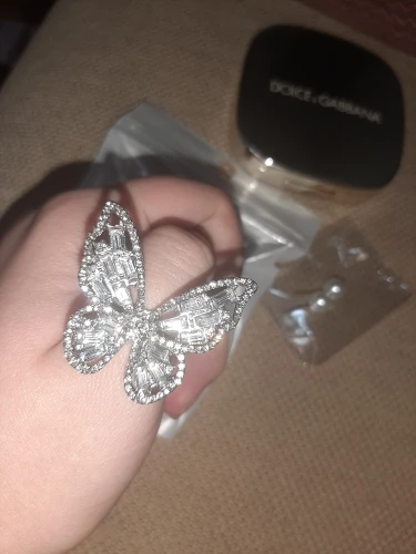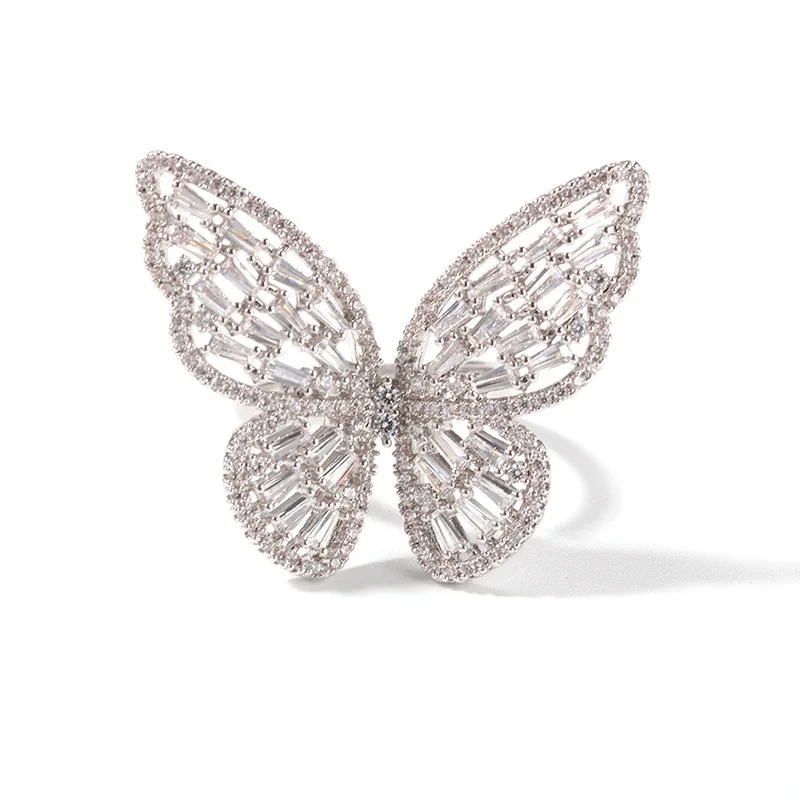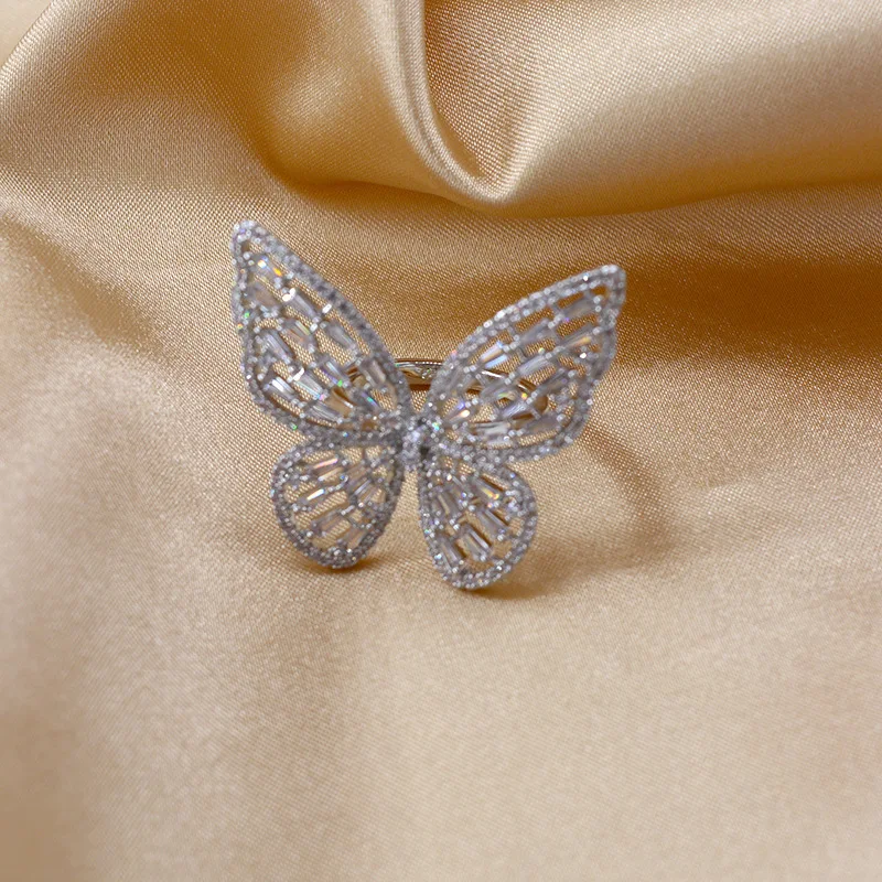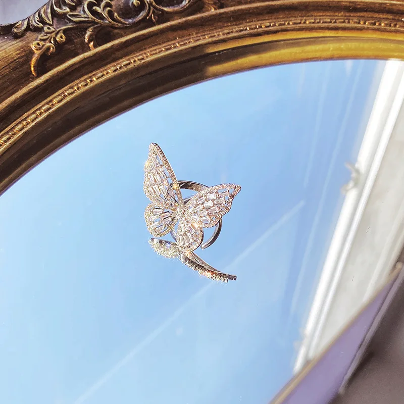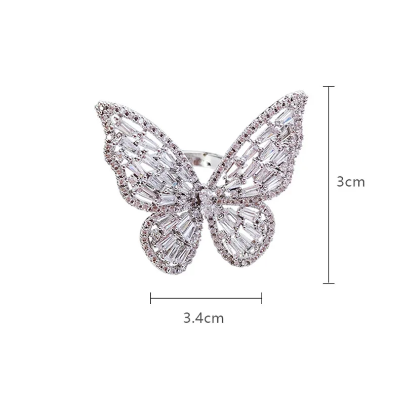 Женское кольцо с бабочкой, регулируемое открывающееся кольцо с акриловой вставкой и кристаллами, 2021