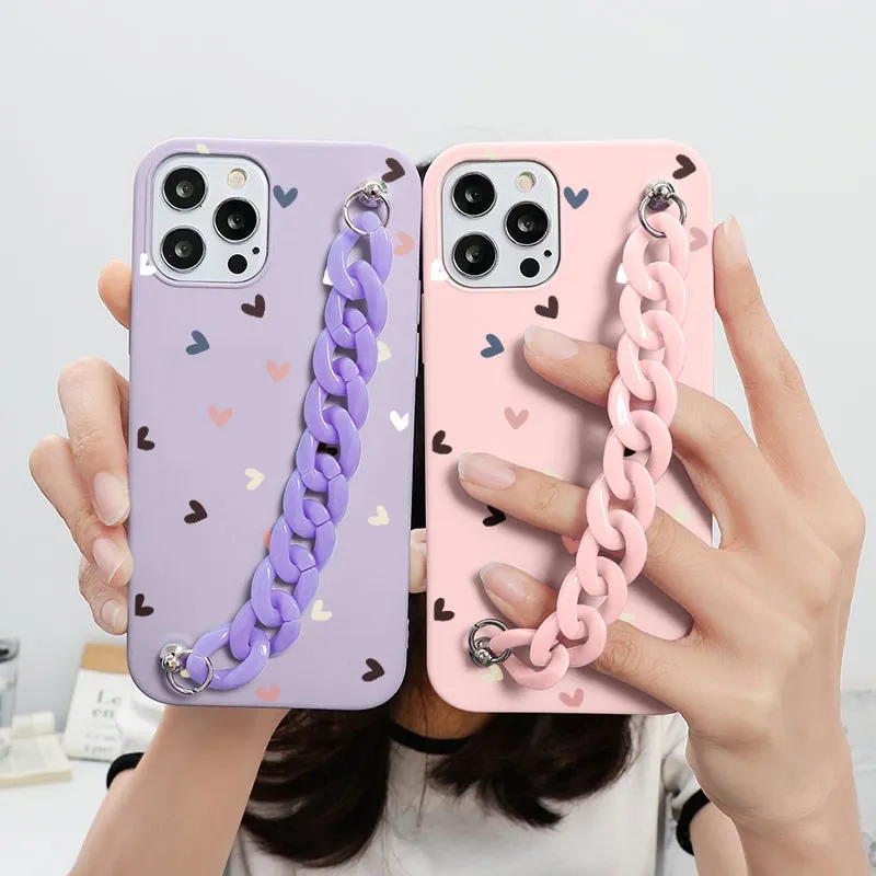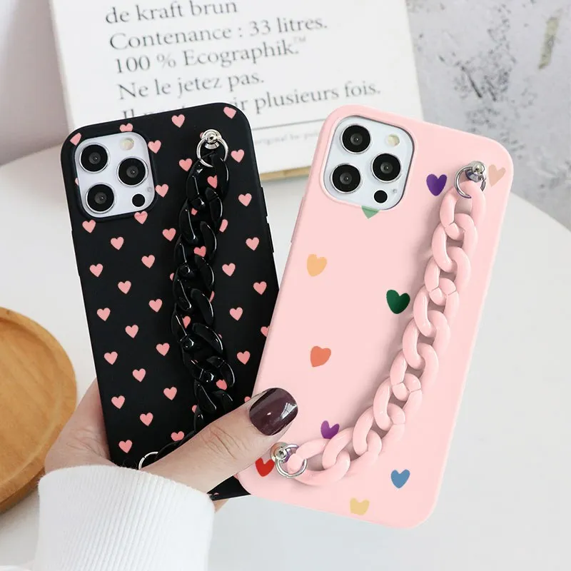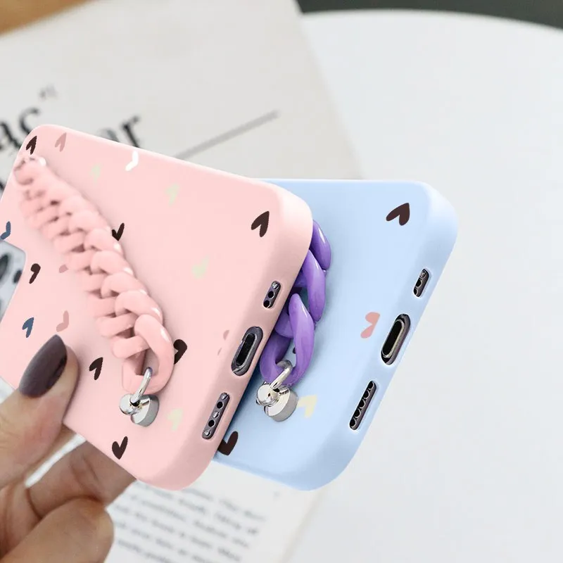 Чехол из ТПУ с цепочкой и сердечками для Huawei Honor P30 Pro P20 P40 Lite E P Smart Y9 Prime Y7 Y6 2019 2021 Nova 6 SE 2i 10 10X Lite