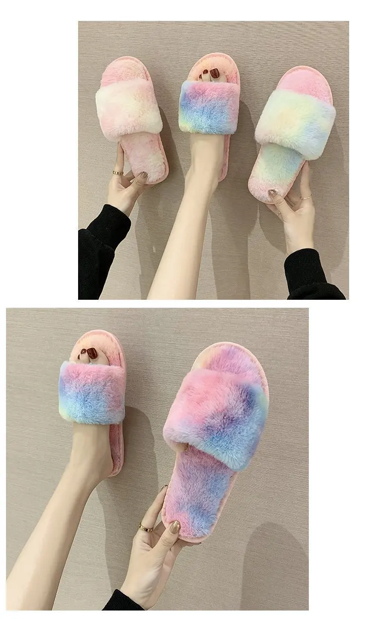 Женские теплые пушистые тапочки, женские зимние меховые домашние та...
