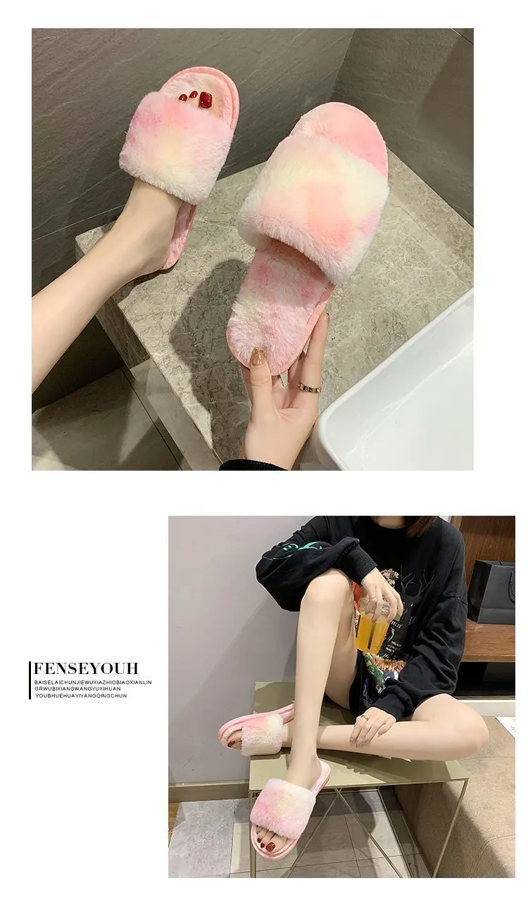 Летние пушистые симпатичные меховые тапочки, женская обувь, женские зимние тапочки, модные меховые сланцы, теплая домашняя женская обувь розового цвета