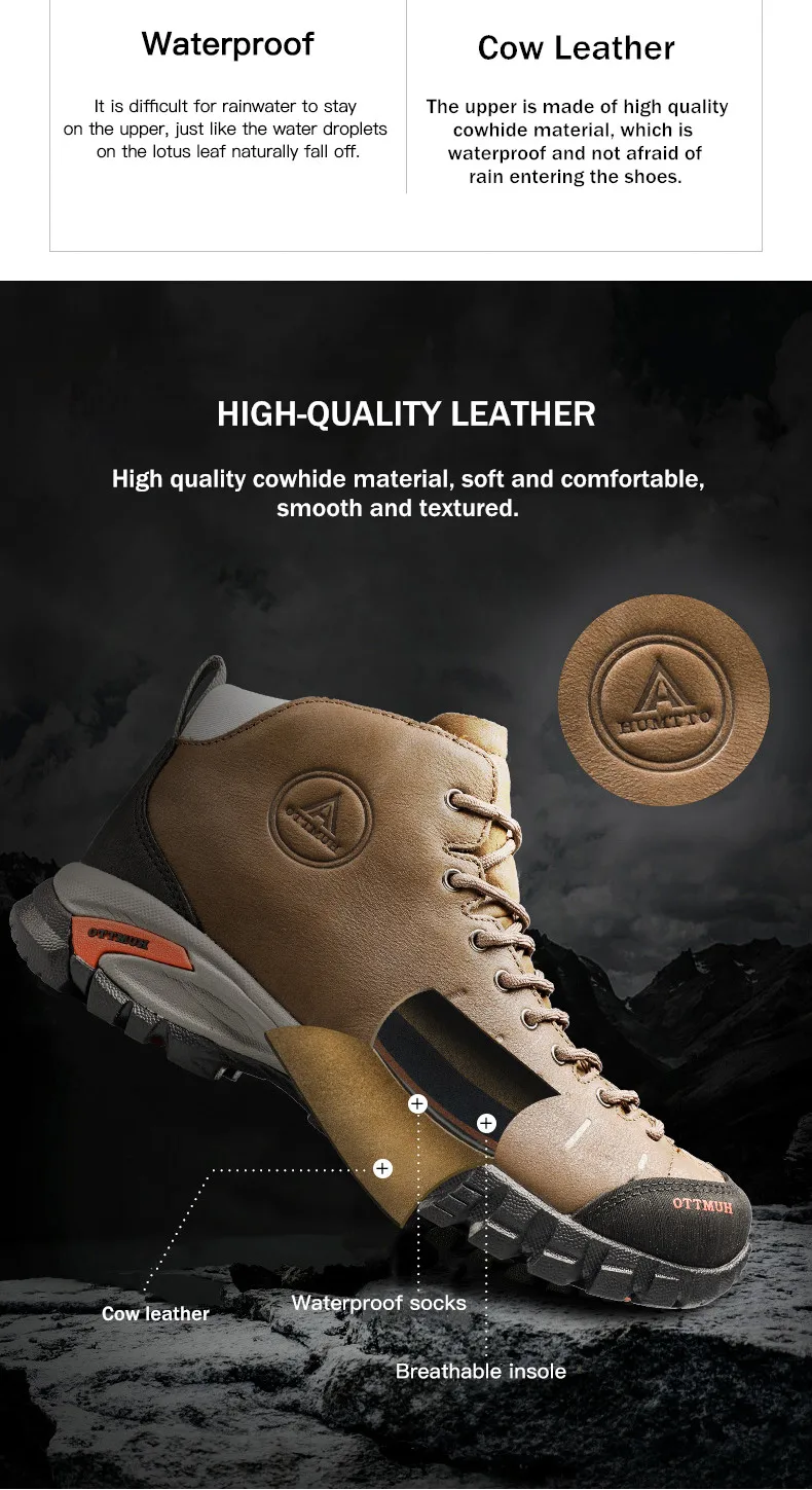 HUMTTO треккинговые ботинки мужские уличные кожаные водонепроницаем...