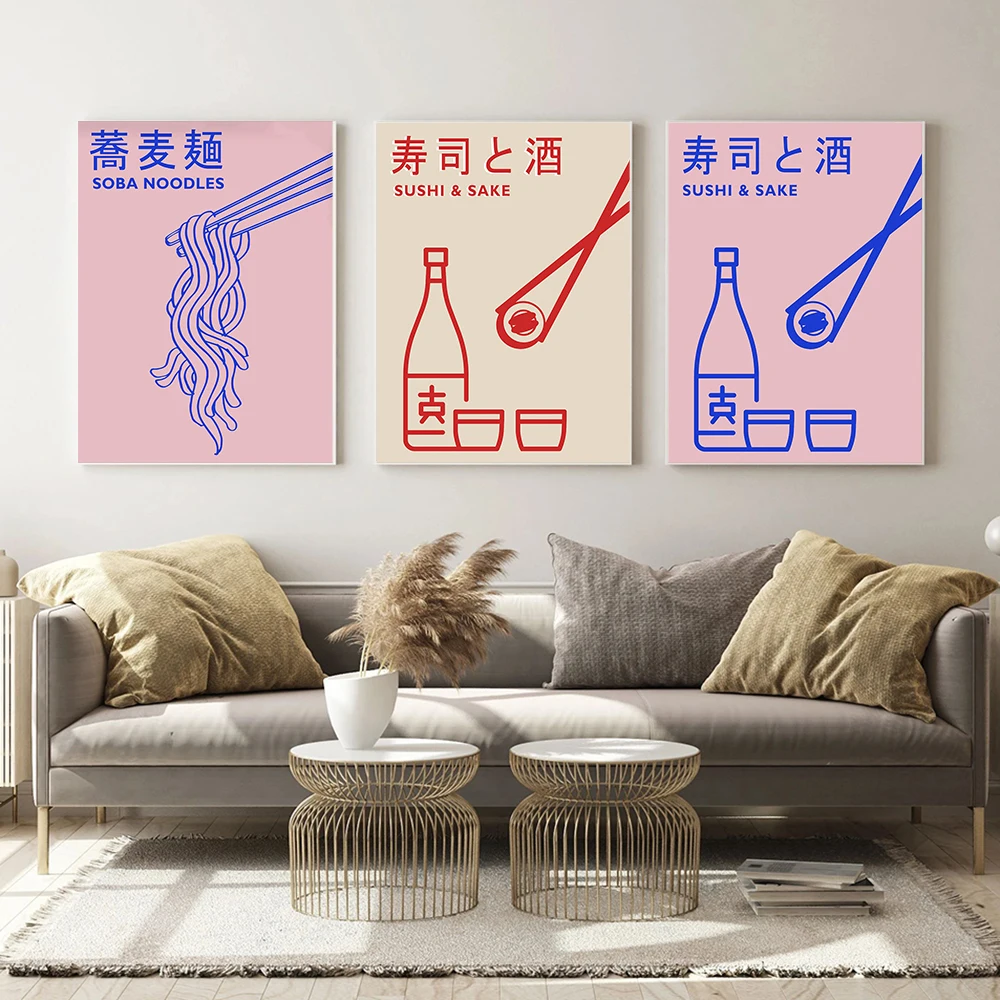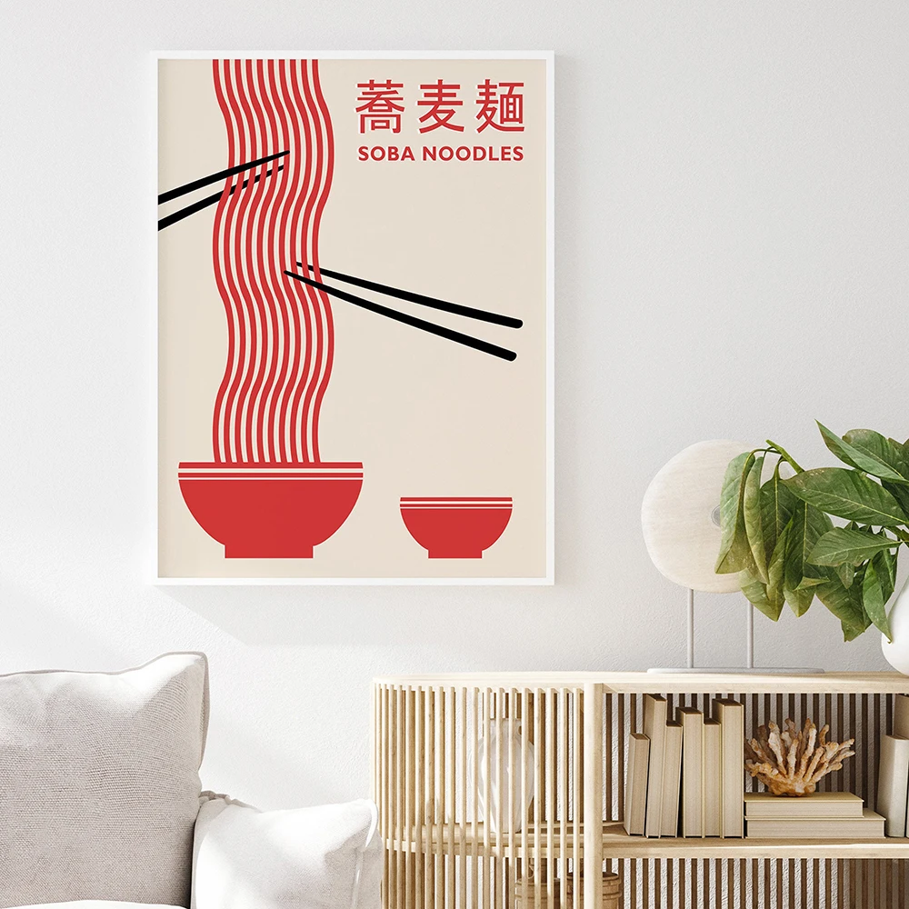 Плакаты с японской едой для ресторана, настенная живопись на холсте, в скандинавском стиле, с лапшой соба, принты, современный декор для кухни и комнаты