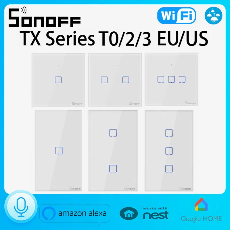 Умный настенный выключатель SONOFF TX T0, ЕССША, Wi-Fi, таймер, 123 клавиш, умный дом, Alexa Google Home, голосовое управление
