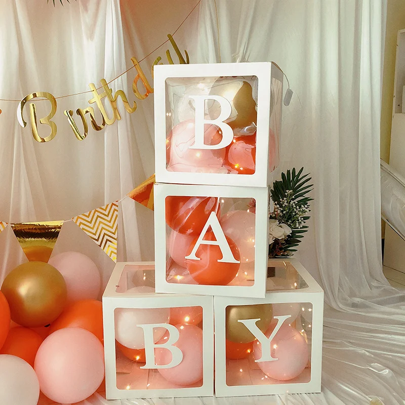 Прозрачная коробка для детского душа с надписью на заказ, украшения...