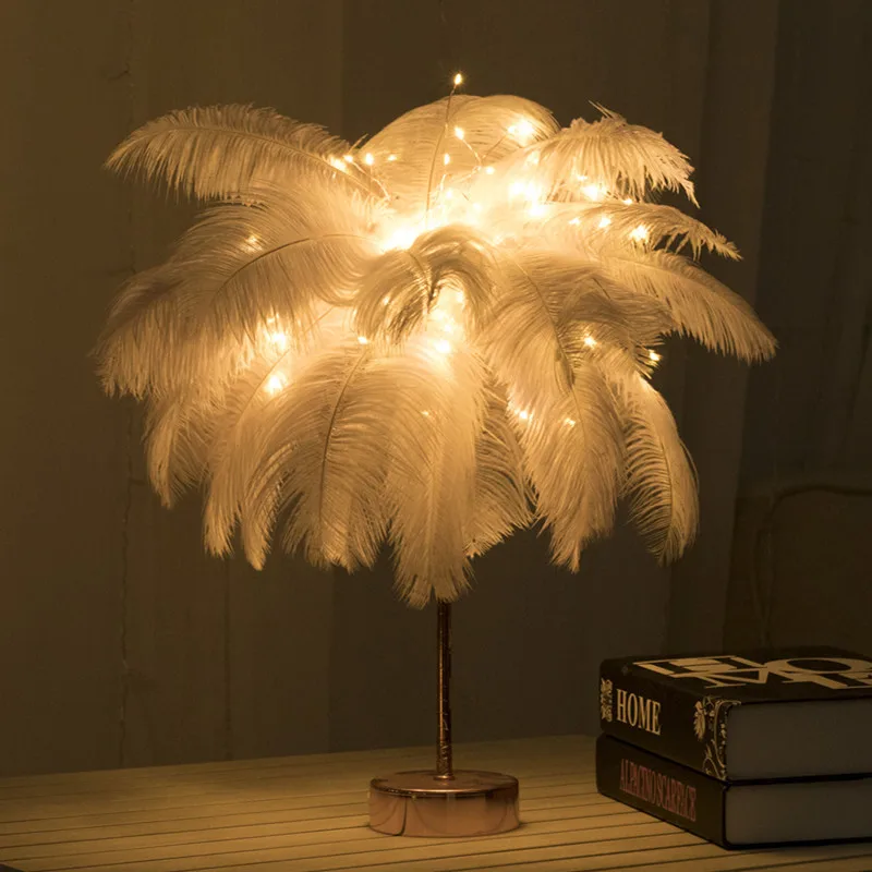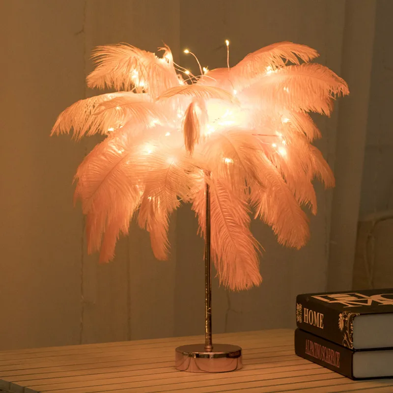 Сказочная лампа для спальни перьевая Настольная лампа DIY креативный причудливый светильник для спальни свадебное украшение для дома AA батарея прикроватный ночной Светильник