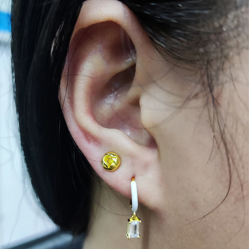 Женские серьги-кольца из серебра 925 пробы с розовой эмалью
