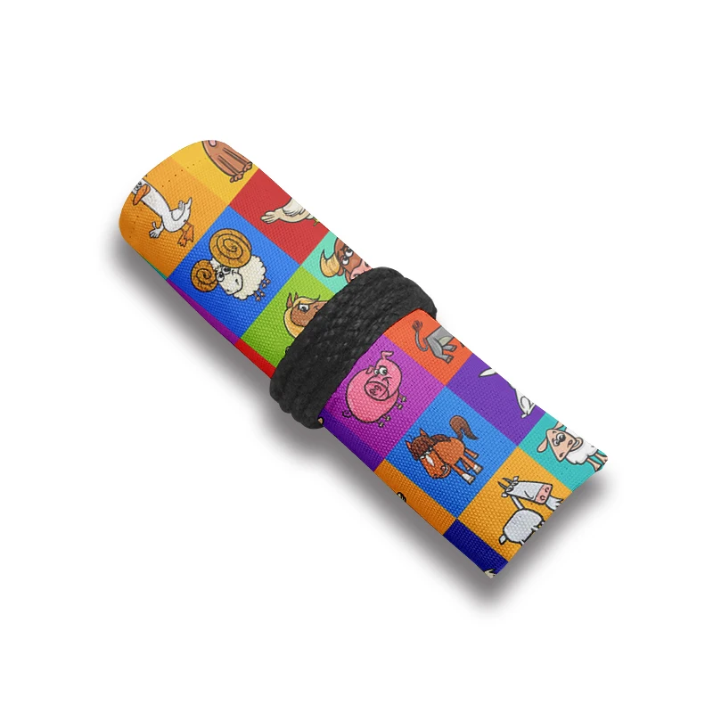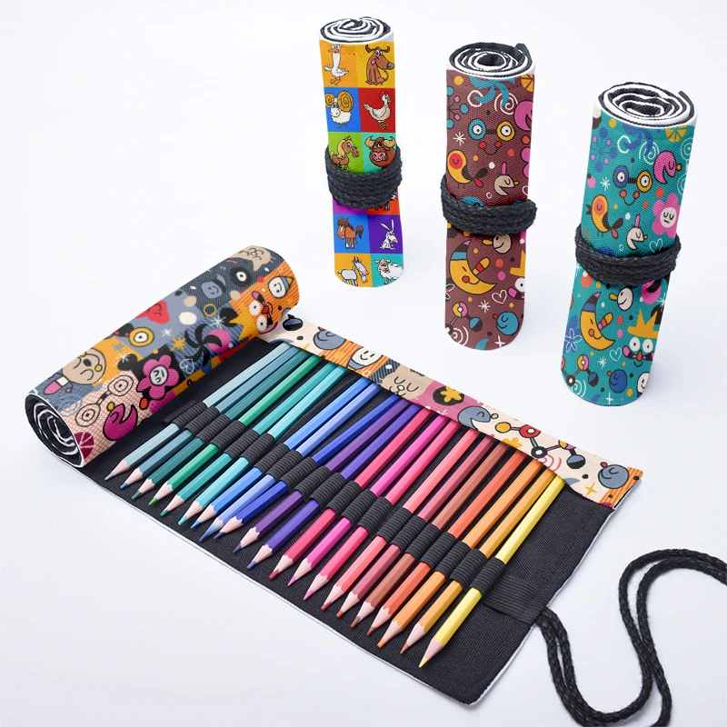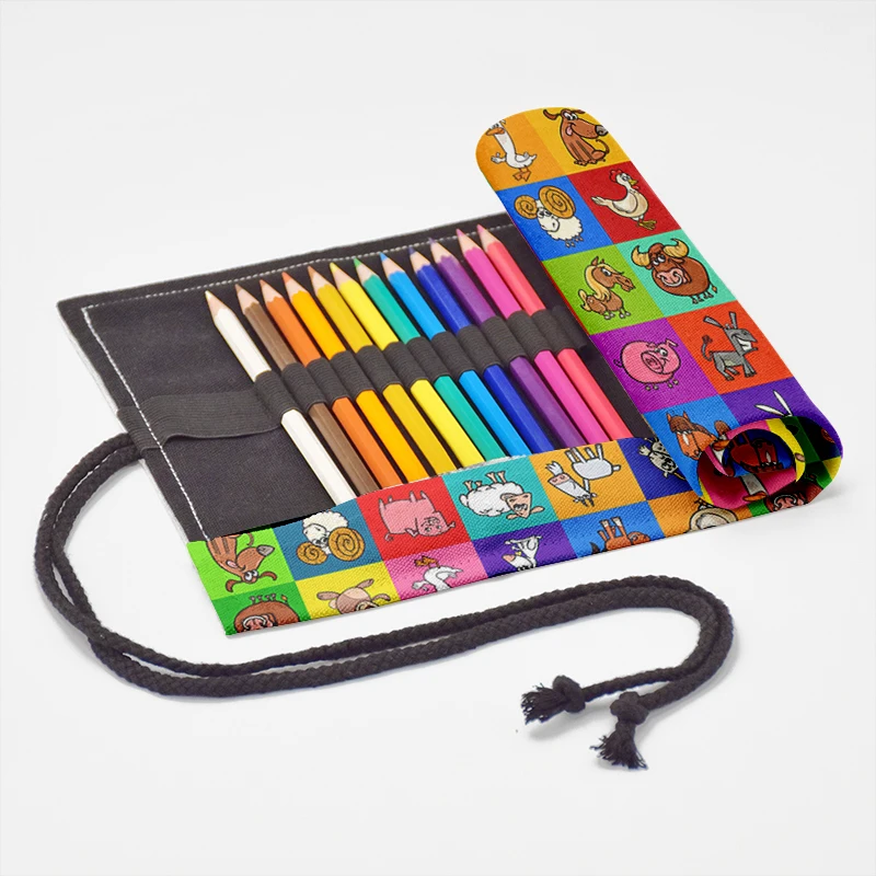 Мультяшный чехол-карандаш рулон печати, Холщовая Сумка для хранения рисунков, 12/24/36/48/72 отверстий, креативная сумка с забавными животными в стиле Харадзюку для девочек и мальчиков
