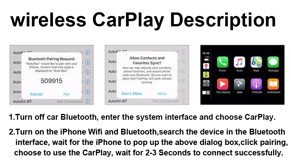 Беспроводной автомобильный декодер Apple CarPlay Android для BMW Mi...