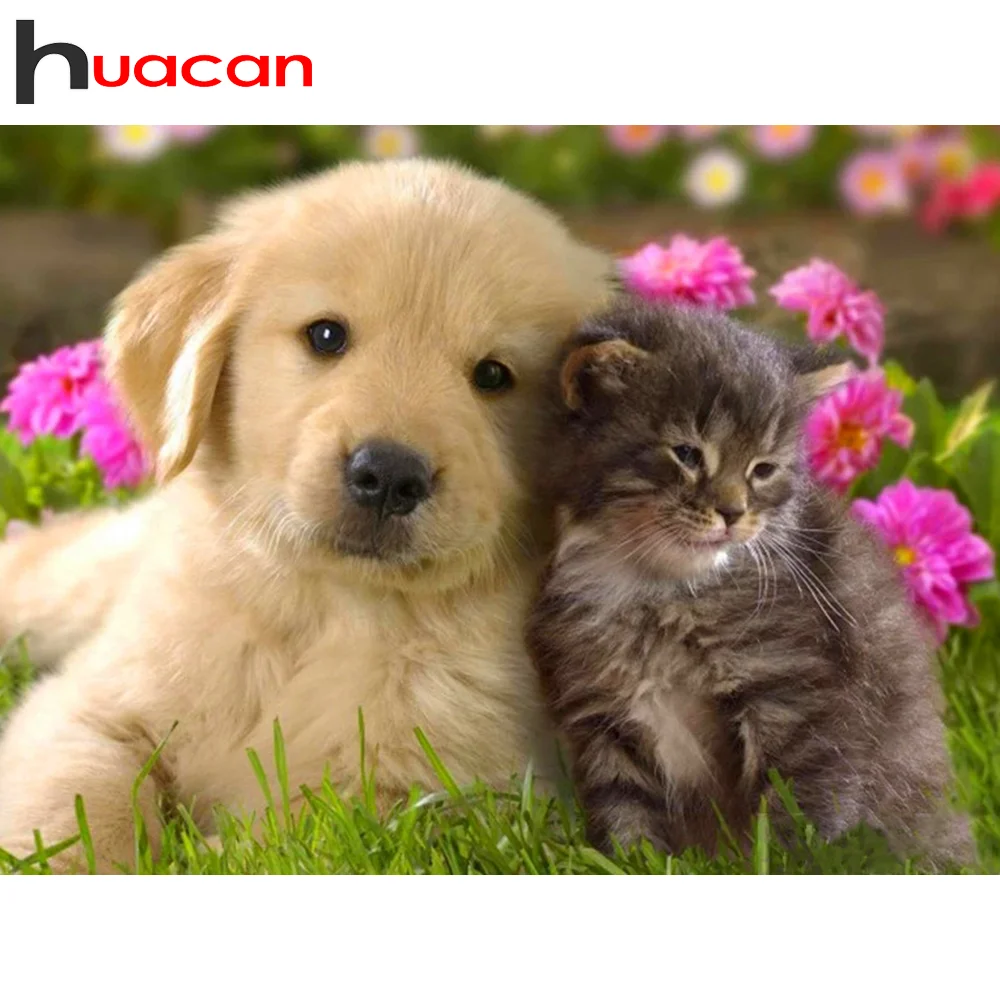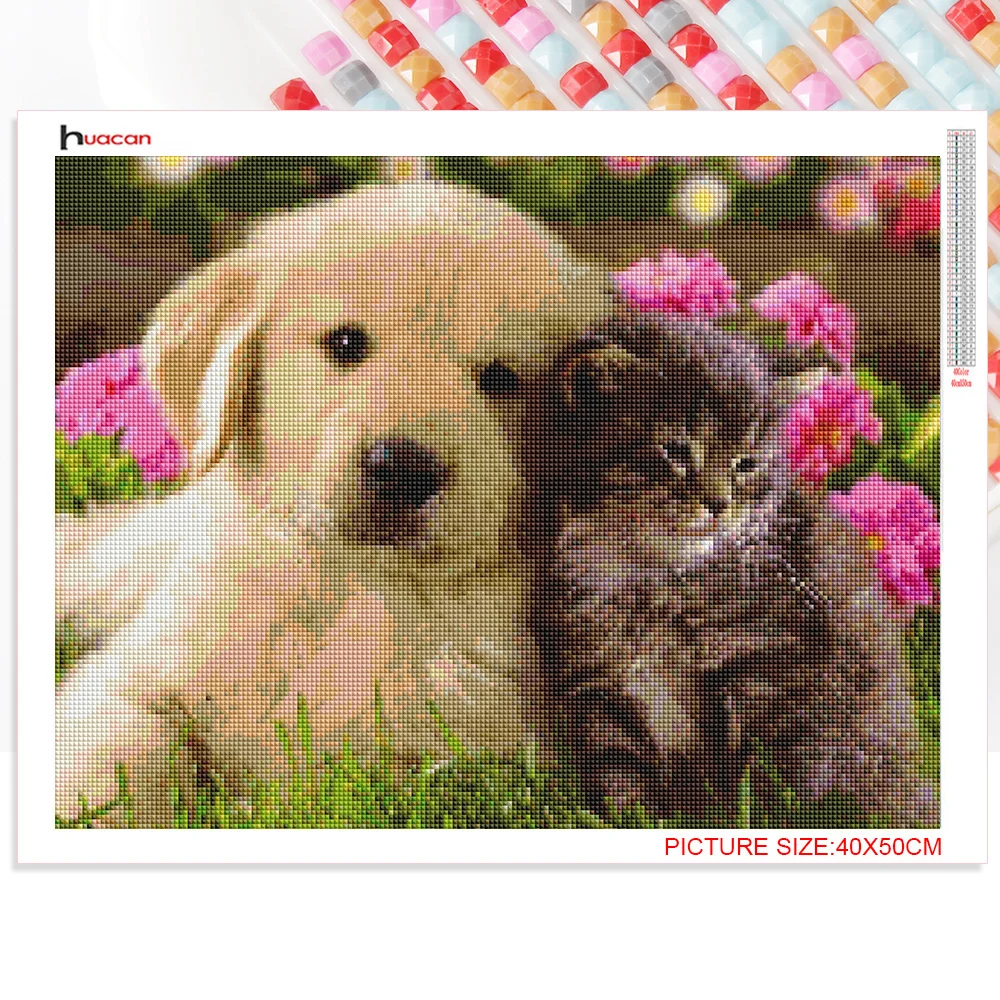 Алмазная мозаика Huacan, наборы для вышивки крестиком, животные, 5D "сделай сам", картина из страз, собака, кошка, творческие товары для рукоделия