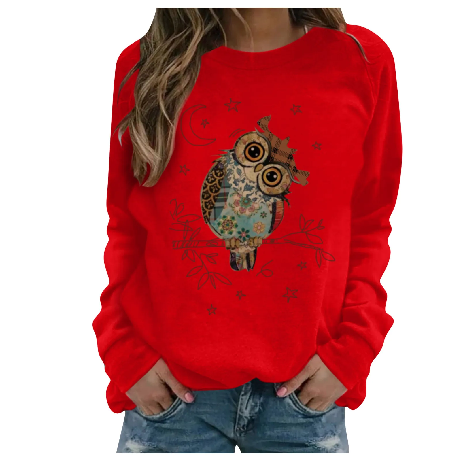 Женские толстовки с принтом совы, пуловер с длинным рукавом, повсед...