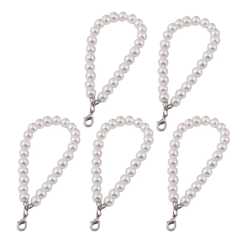 Ремешок на запястье с искусственным жемчугом 5 шт., цепочка для кошелька с белым жемчугом, ремешок на запястье, брелок, набор ремней для ключей с кошельком