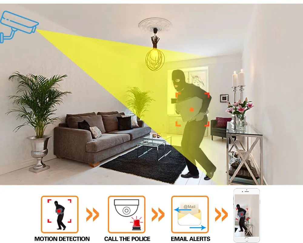 Можно настроить область, которую вы хотите контролировать, когда она срабатывает, она отправит сообщение на вашу электронную почту, вы можете получить информацию из первых рук, независимо от того, когда и где вы находитесь.