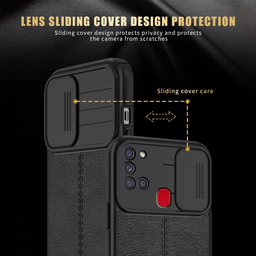 Кожаный текстурный чехол для Samsung Galaxy A21s, защита объектива, нажимная камера, защитный чехол для телефона A52 A32 A22 A72 A12 A02 A71 M32 4G 5G
