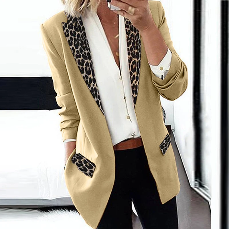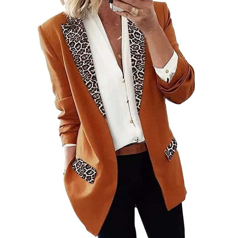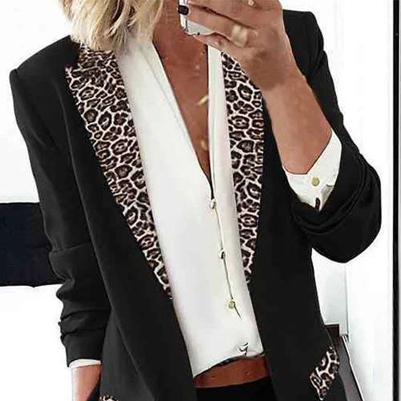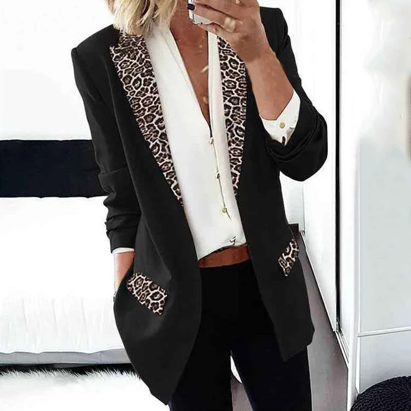 Женский кардиган с отложным воротником, Повседневная элегантная офисная куртка с леопардовым принтом и длинными рукавами, Осень-зима