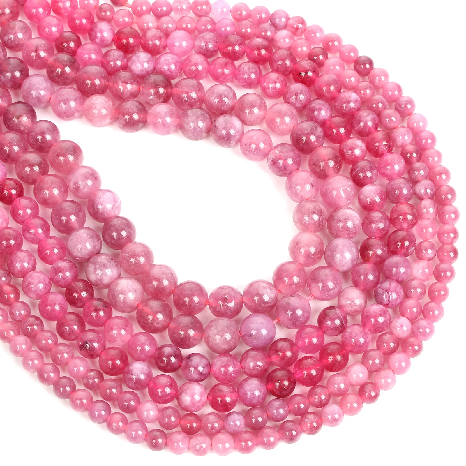 Бусины из натурального камня, розовый турмалин, кварц, круглые бусины для изготовления ювелирных изделий, самодельные браслеты, Аксессуары для ожерелья, бусины 6810 мм