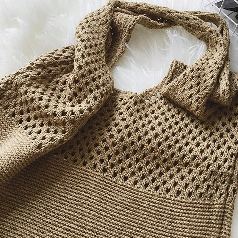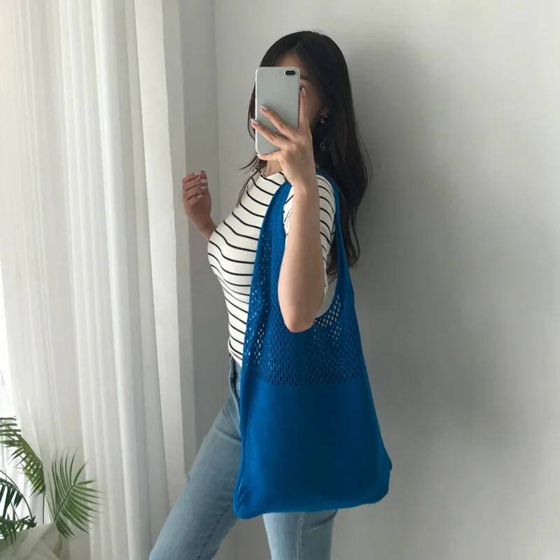 Ажурная плетеная сумка на плечо, Женская хлопковая вместительная су...