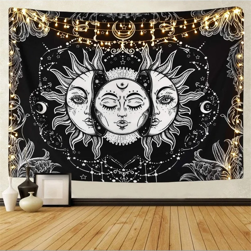 Гобелен с изображением мандалы, белого, черного солнца и гобелен с Луной, настенные гобелены со сплетницами, гобелены в стиле хиппи, спальни, домашний декор, одеяло 95x73 см