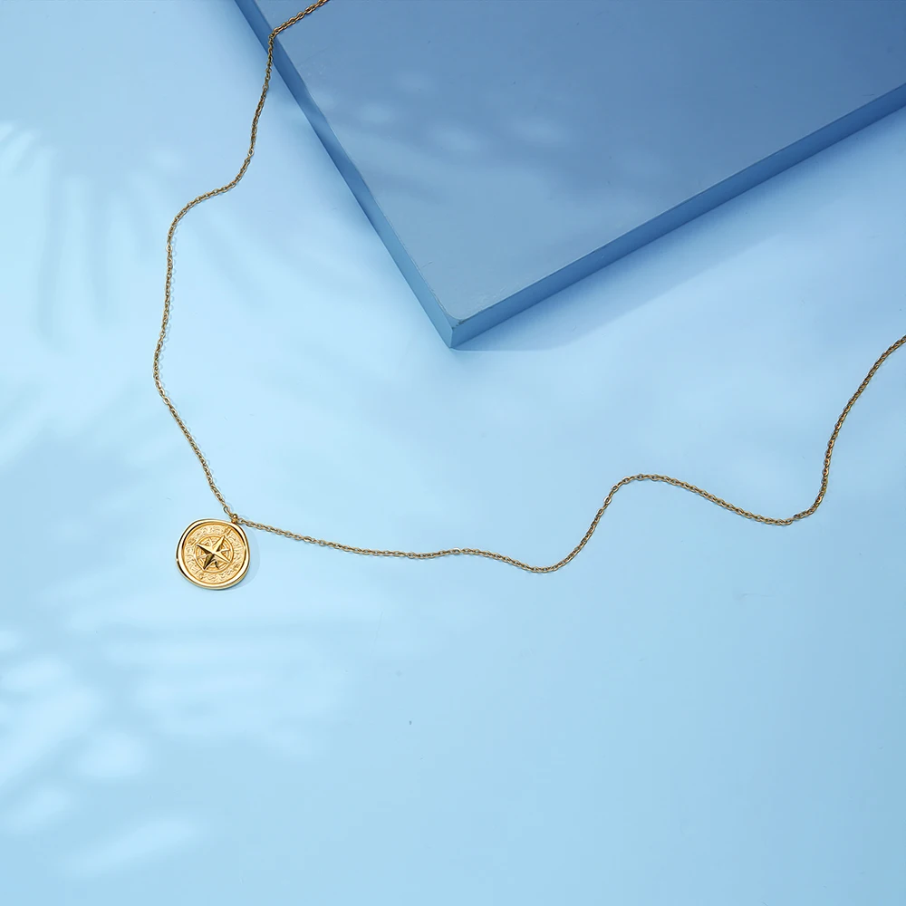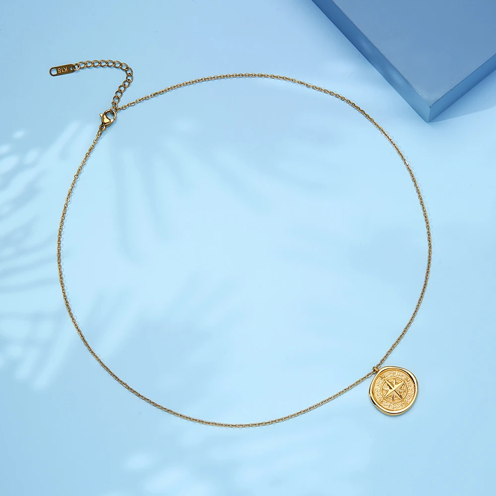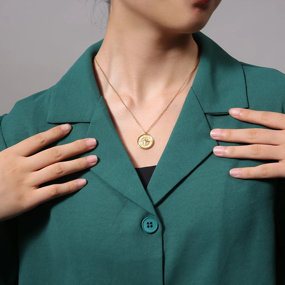 Женский Круглый Кулон FANSHIDI из нержавеющей стали, бриллиант золотого цвета с цепочкой до ключиц, с монетами