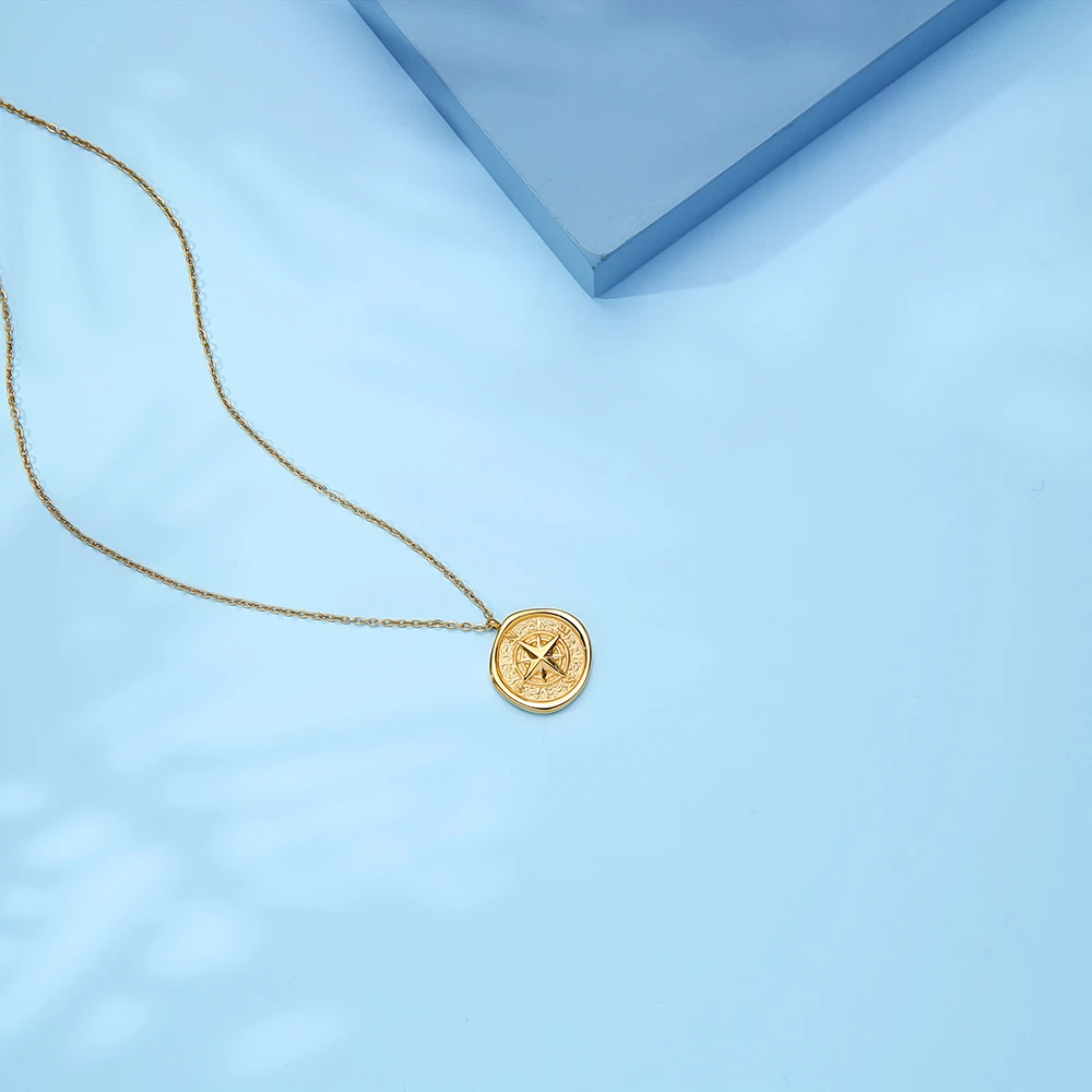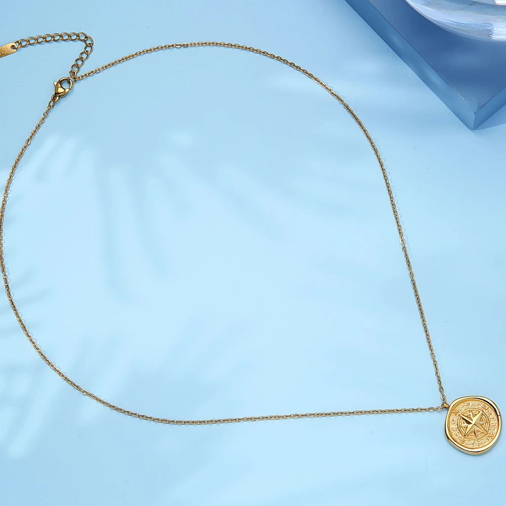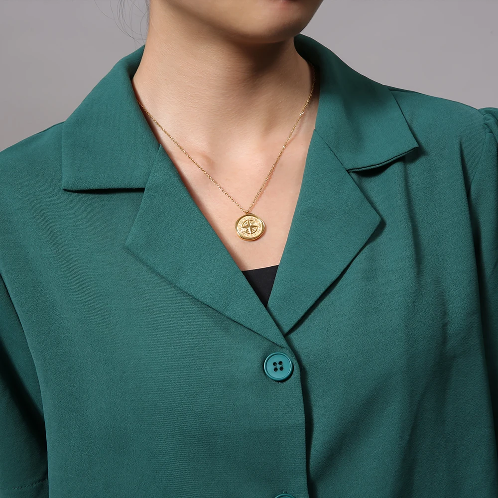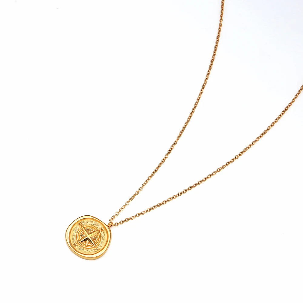 Женский Круглый Кулон FANSHIDI из нержавеющей стали, бриллиант золотого цвета с цепочкой до ключиц, с монетами