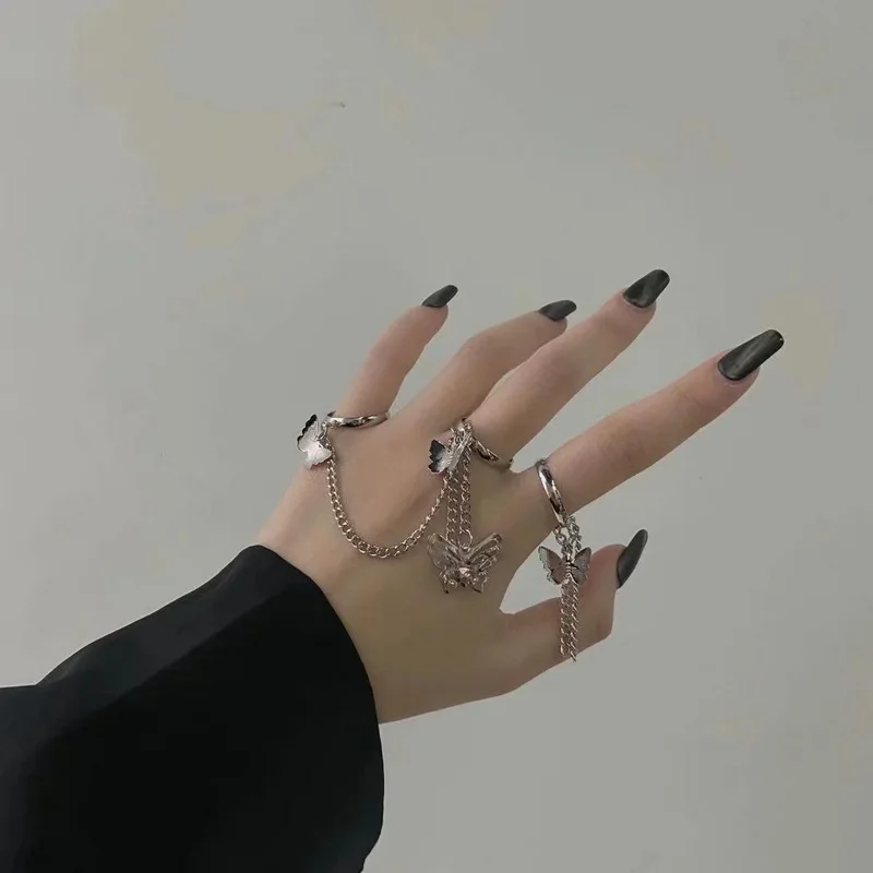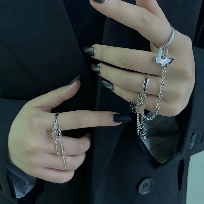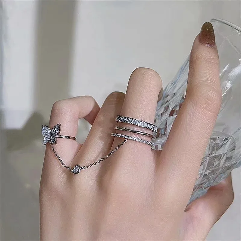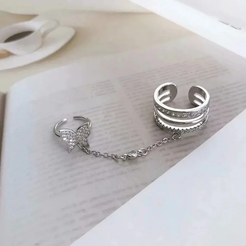 Личность Бабочка цепи кольца для женщин Винтаж блеск двойные кольца...