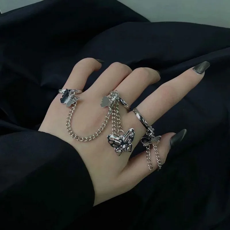 Панк Стиль бабочка цельный цепи разомкнутые кольца в стиле хип-хоп ...