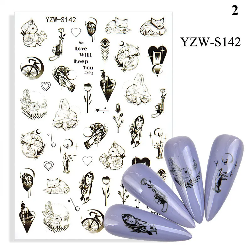 Новинка 2022 5D черно-белые наклейки на ногти бабочки роза цветок Ф...
