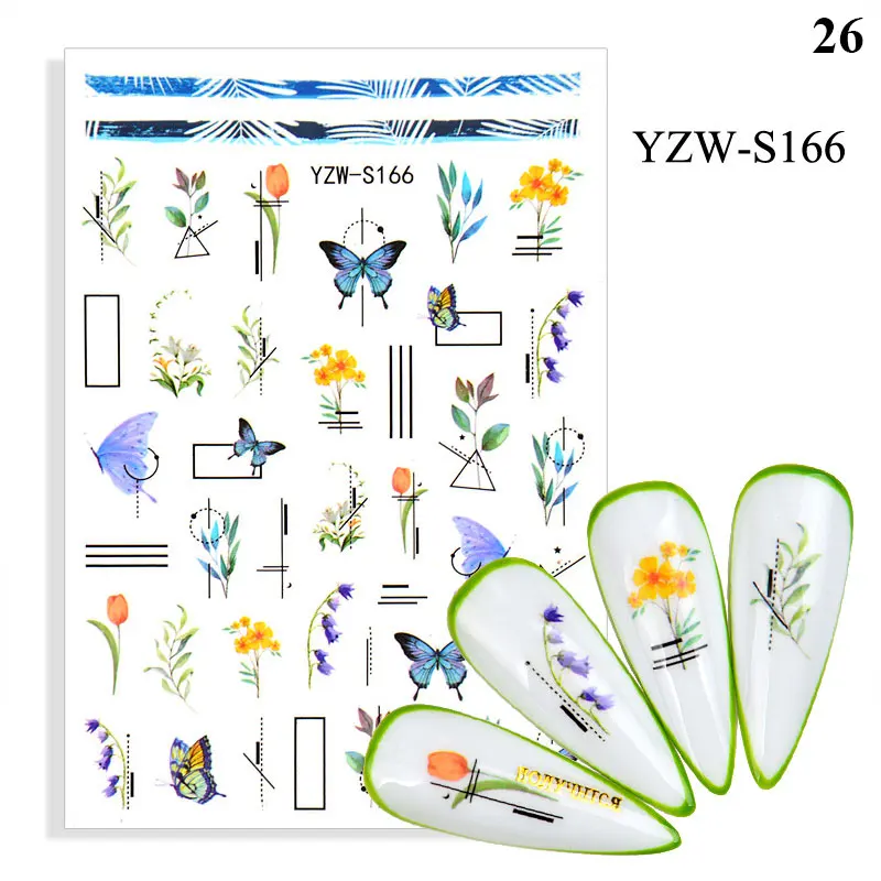 1 лист водных переводных наклеек для ногтей самоклеящиеся слайдеры бабочка цветок листья Фольга для ногтей Сделай Сам Маникюр художественное украшение оптовая продажа
