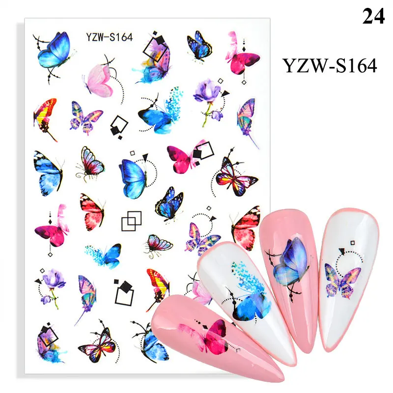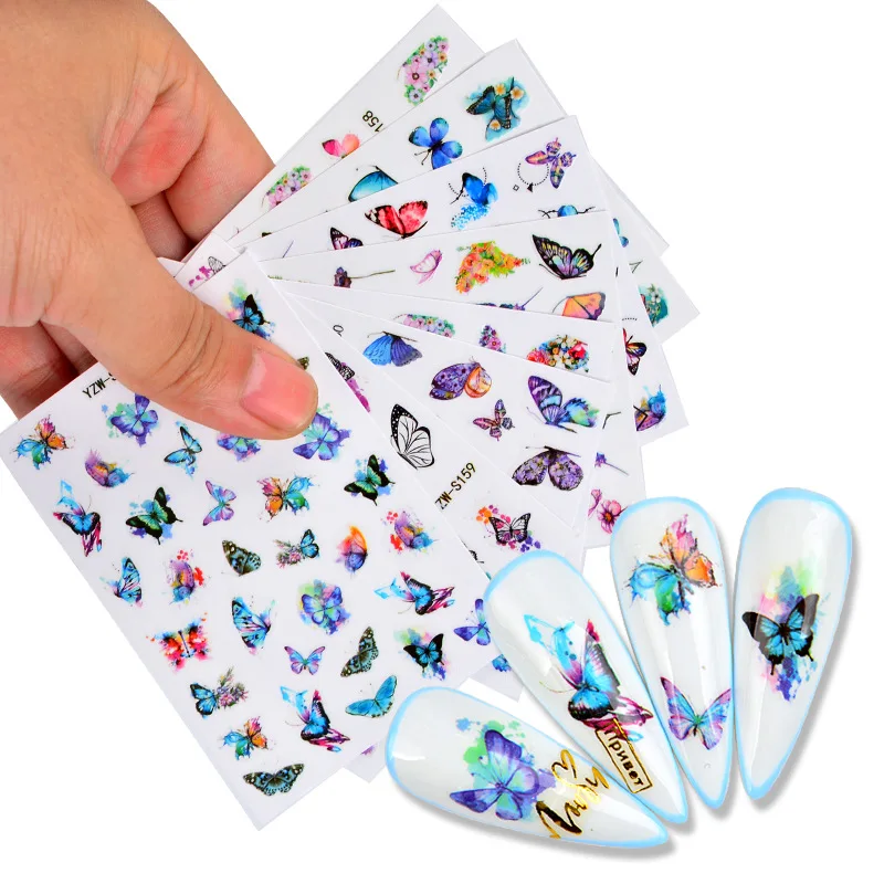 Лидер продаж 2021, акварельные бабочки, клейкие наклейки для ногтей...