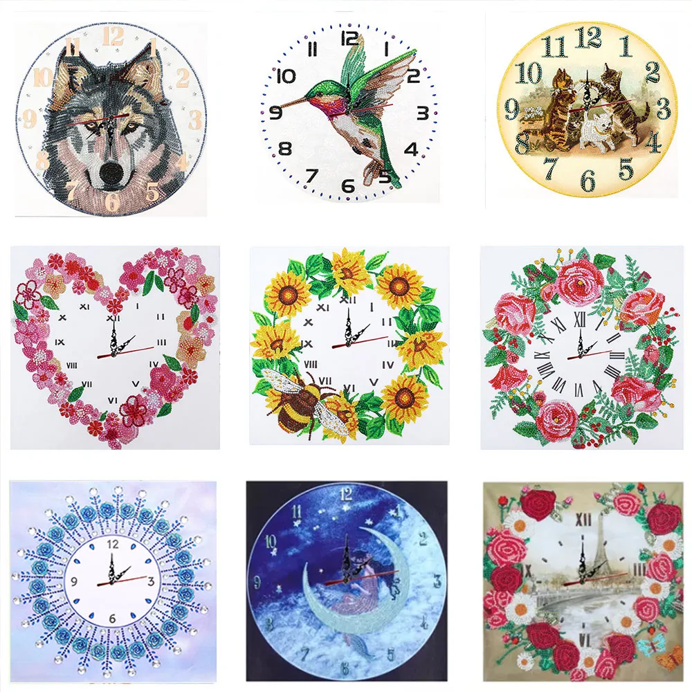Алмазная живопись 5d "сделай сам", часы с животными и цветами, Набор для вышивки крестиком, часы, вышивка Алмазная мозаика для украшения, украшения для дома, подарок