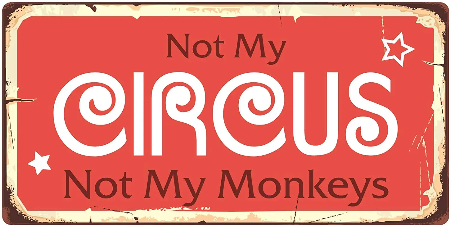 982HS, не мой цирк, а не мои обезьянки, 5x10 дюймов, алюминиевый подвесной необычный знак