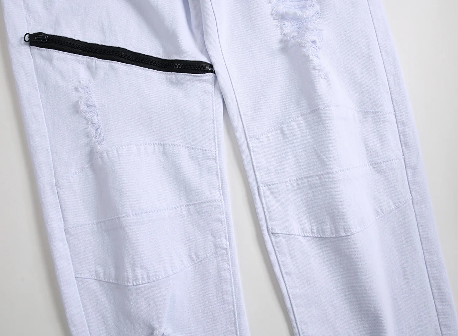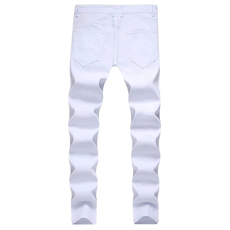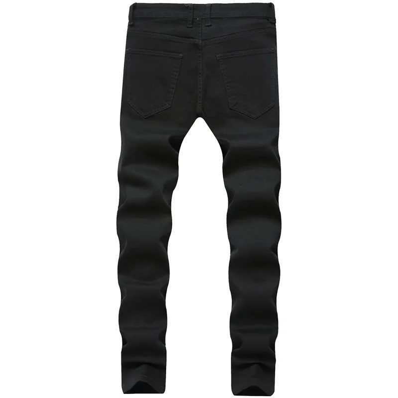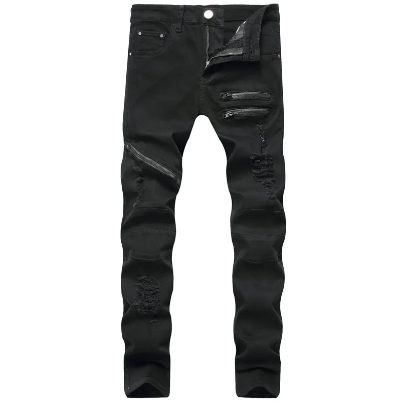 Лидер продаж, мужские повседневные джинсы на молнии с украшением, трехцветные облегающие эластичные Простые прямые штаны на молнии с дырками