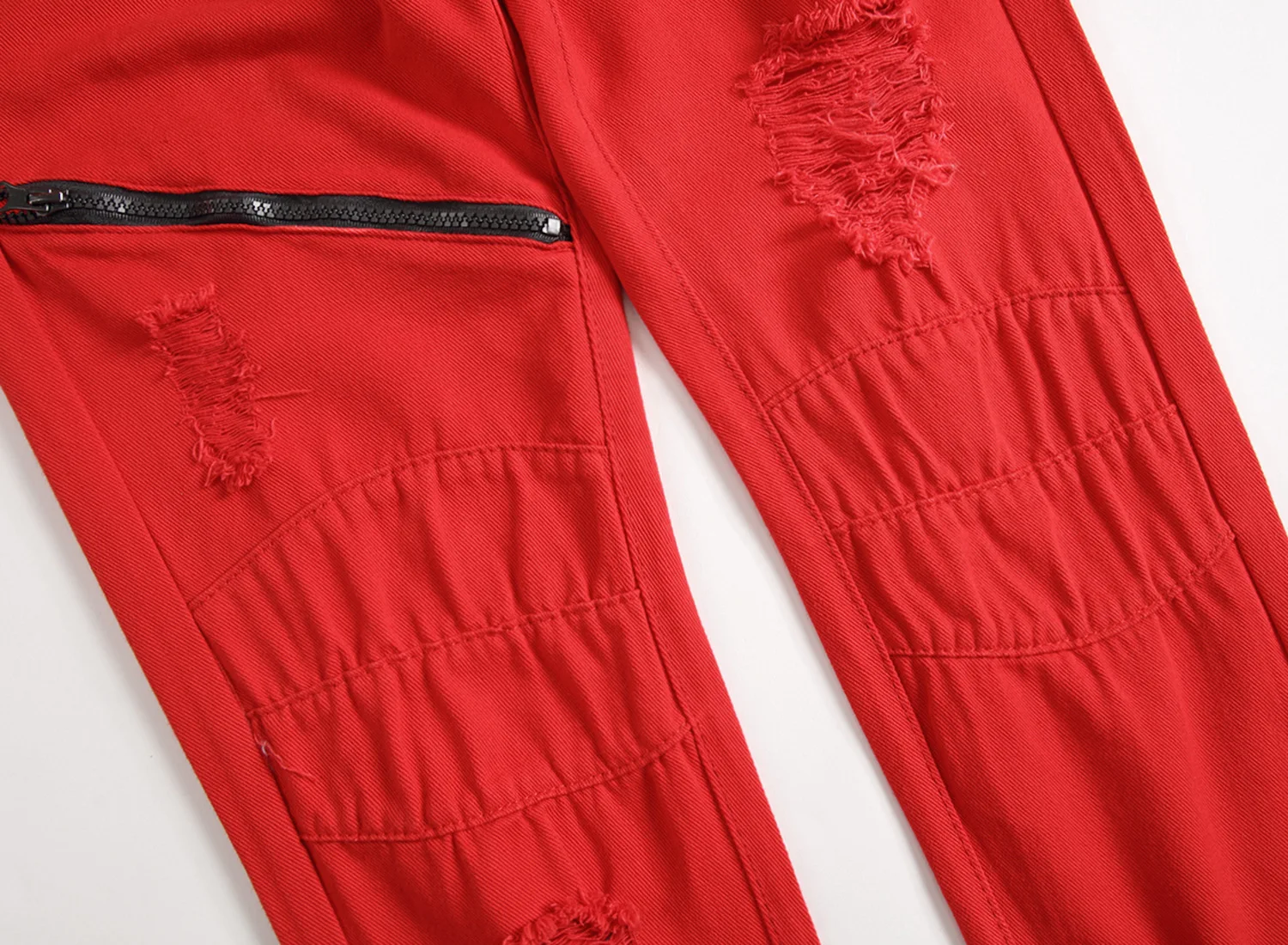 Мужские джинсы на молнии с дырками, рваные Стрейчевые джинсовые брю...