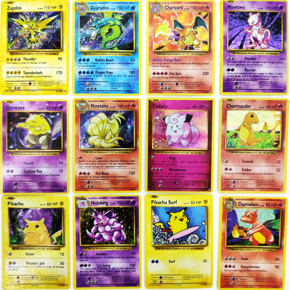 1996 карты покемона, английская Charizard Mewtwo Venusaur, играющая в Покемон, коллекционная карточная игра, детская игрушка в подарок