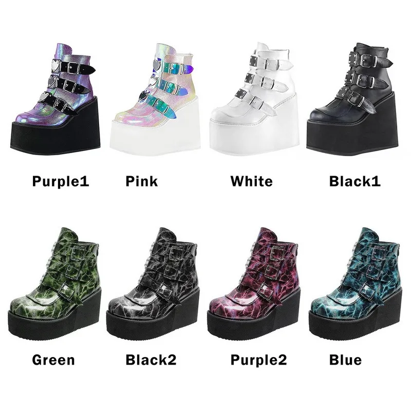 Женские ботинки на танкетке, ботильоны на толстой подошве, в готиче...